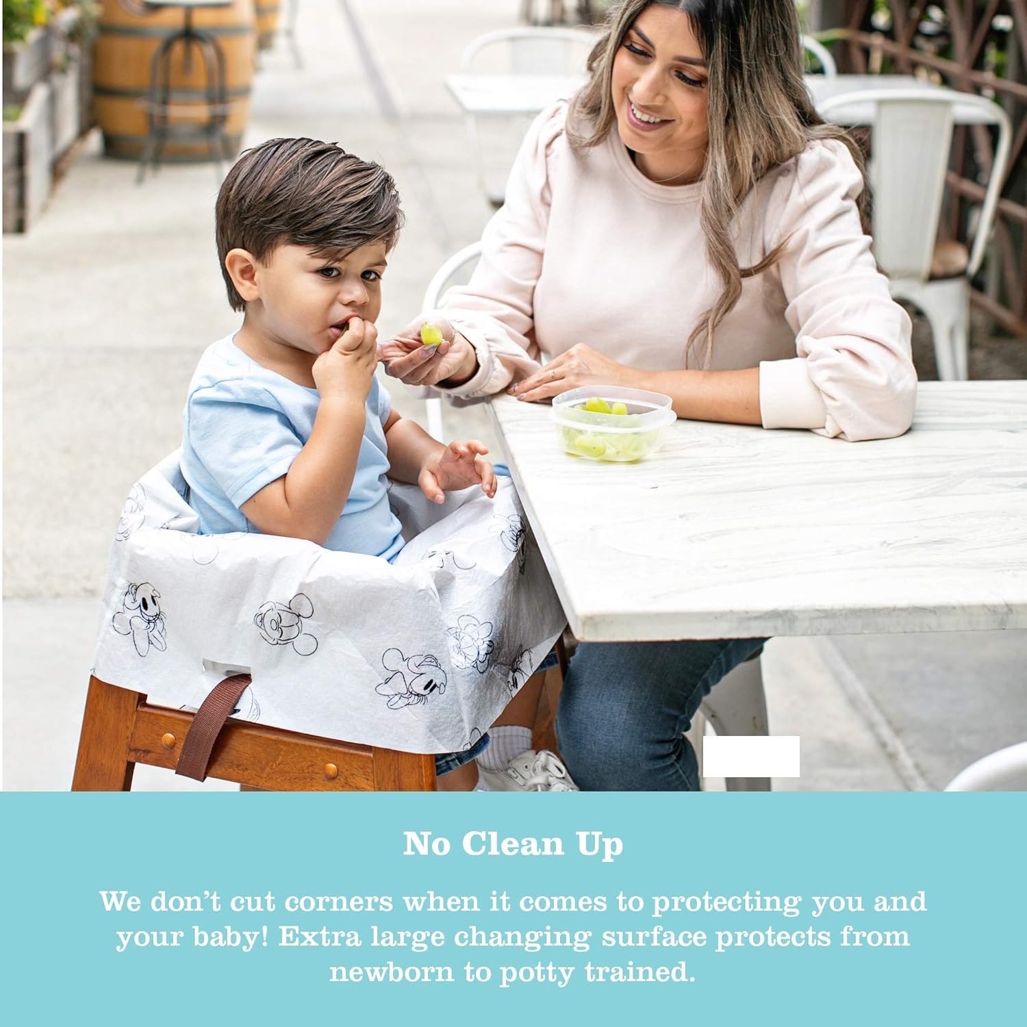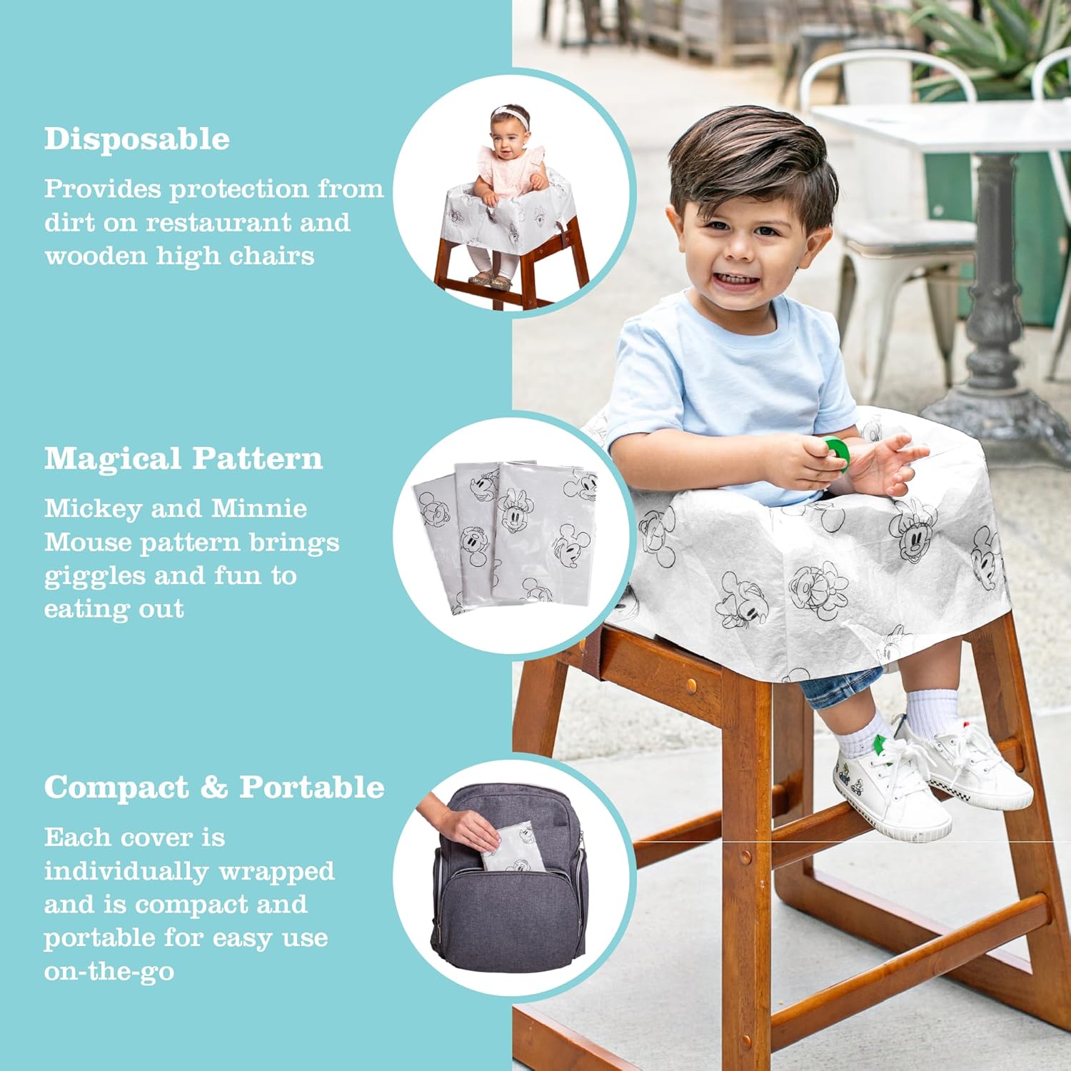 J.L. Childress Disney Baby Disposable Restaurant High Chair Covers – Baby Travel Accessory for Kids & Toddlers, Individually Wrapped, Covers All Surfaces – 12 Count, Mickey & Minnie