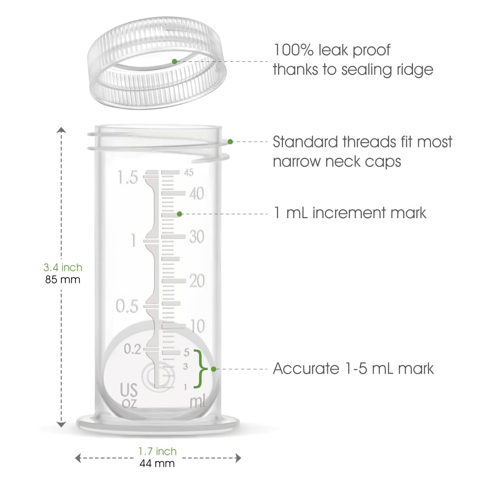 Sloped bottom designed to allow for easy to read and accurate 0-5 mL volume. Great for small amount gold liquid like colostrums. At the same time, it minimize the loss of breast milk Larger, easy-to-read milliliter and ounce measurements Screw-on lid provides leak-proof seal with Medela containers Compatible with Medela breast pumps (all of models) and compatible with ameda pumps (selected, like Mya Joy, Purely Yours)