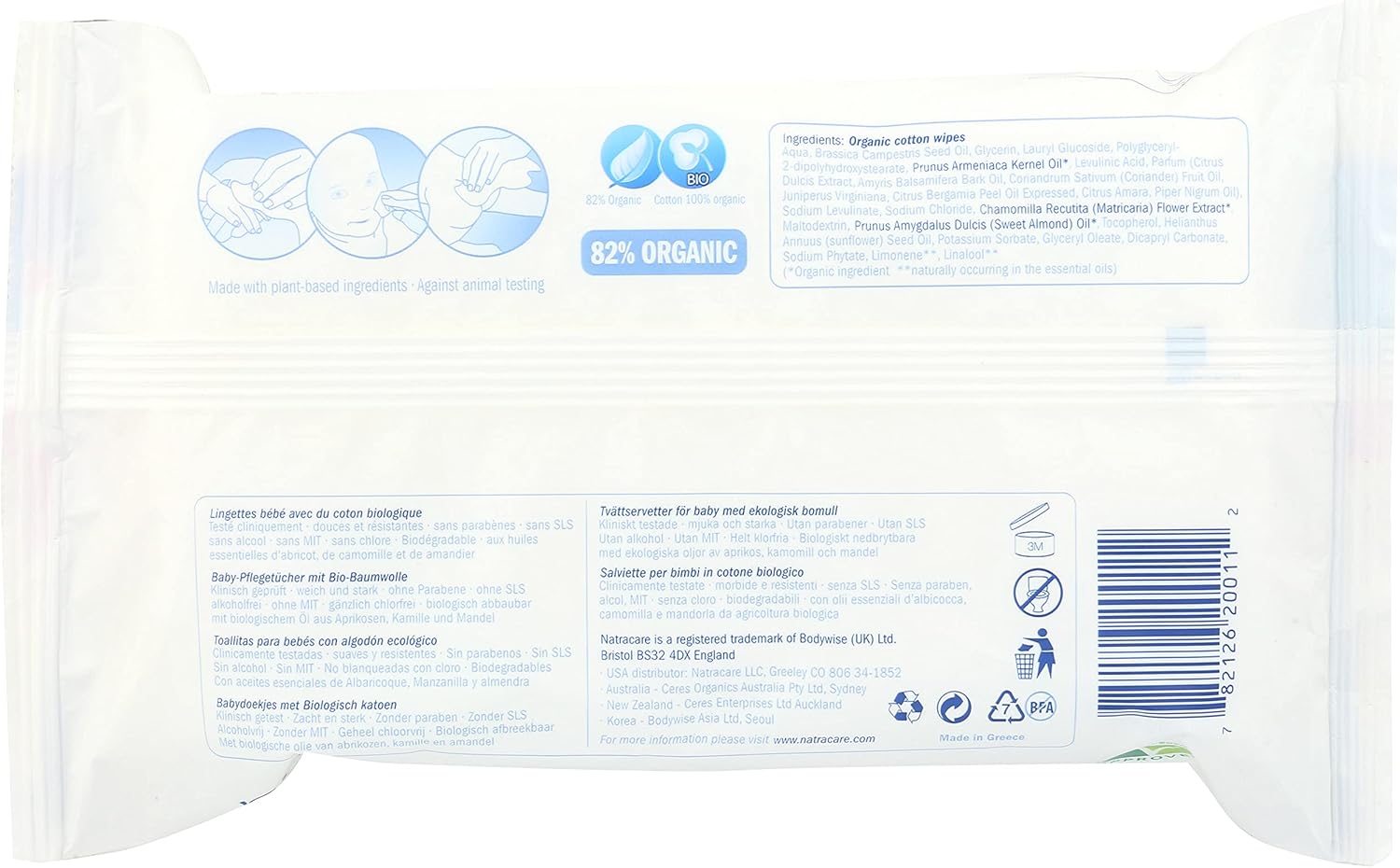 Soft and gentle Organic Baby Wipes for daily use on your little one’s delicate skin. We use an organic cotton cloth infused with organic essential oils of chamomile, apricot and sweet almond oil. All of which cleanse and refresh, leaving skin clean and soft. The gentle formula is free from detergents such as sodium lauryl sulphate (SLS) or any of its close relatives. No parabens or synthetic preservatives, including methylisothiazolinone (MIT) and other types of formaldehyde releasing preservatives. Certified by The Soil Association.