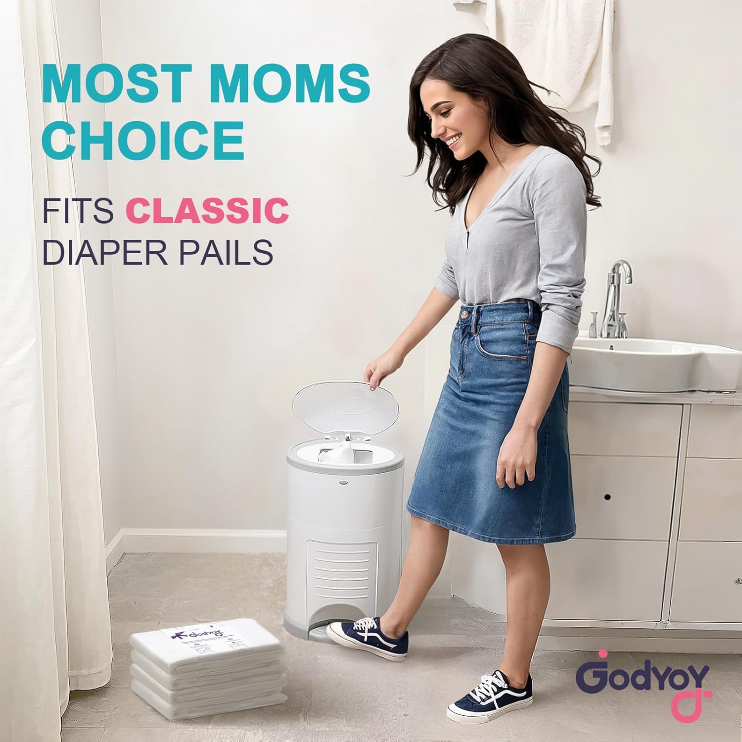 Extra 30% Thickness & Multi-Layer Protection: Featuring advanced odor control, our diaper pail refill bags are crafted with state-of-the-art high-barrier materials to effectively lock in odors. The reinforced material is tear-resistant, highly durable, and leak-proof, ensuring hassle-free disposal of baby diapers and other wet waste.