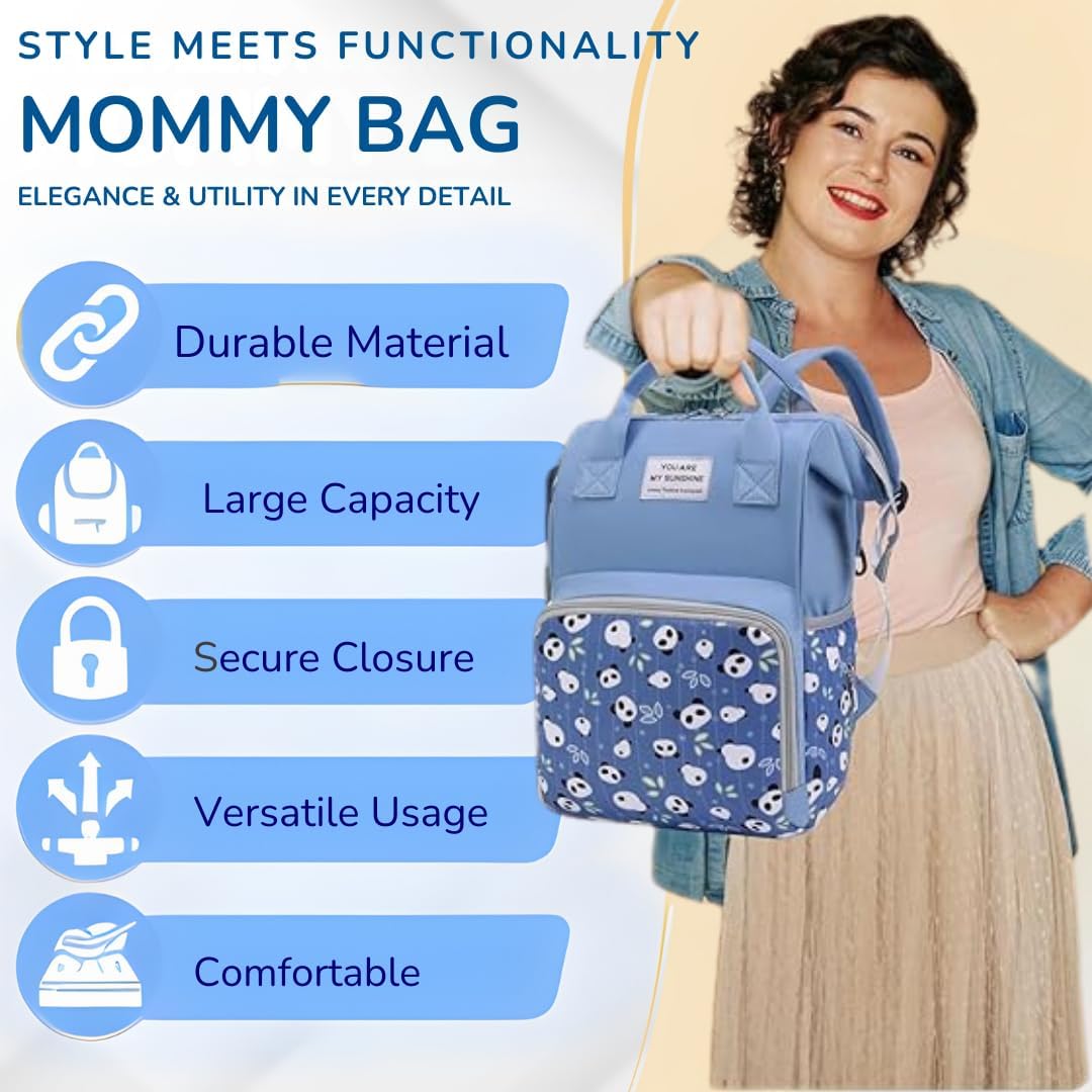 [Baby Must Have for Newborn] Our diaper bag backpack or diaper bag tote is made premium waterproof oxford cloth, inner polyester fabric,size14.9*10.2*7.08inch, elegant design with special printed pandas. This baby bag for boy girl it is specially designed to carry the items necessary to take care of your baby or a toddler when you are out and about from home.