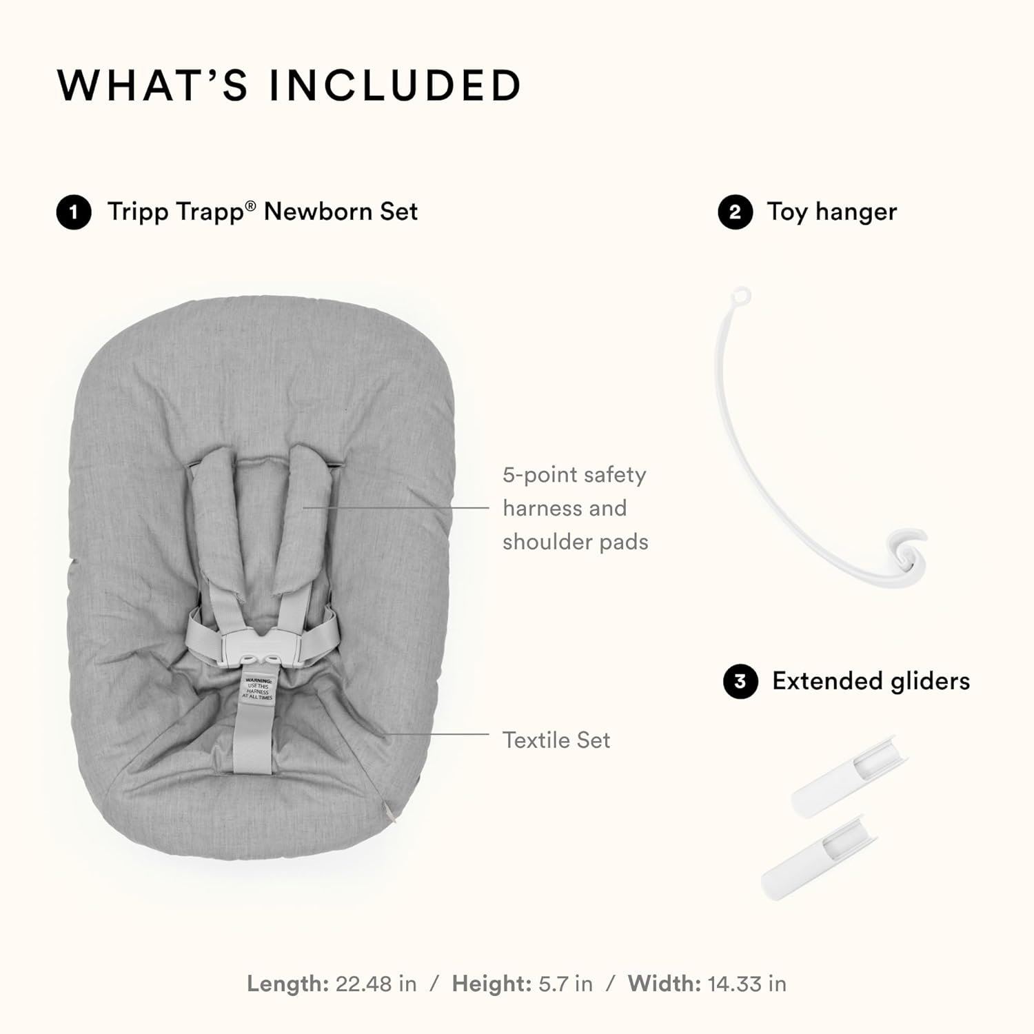 ADDED BENEFITS – The Tripp Trapp Newborn Textile Set can be removed and is machine washable. The Newborn Set also includes a toy hanger, letting your little one keep their favorite toys close, and helping to stimulate their evolving motor skills.
