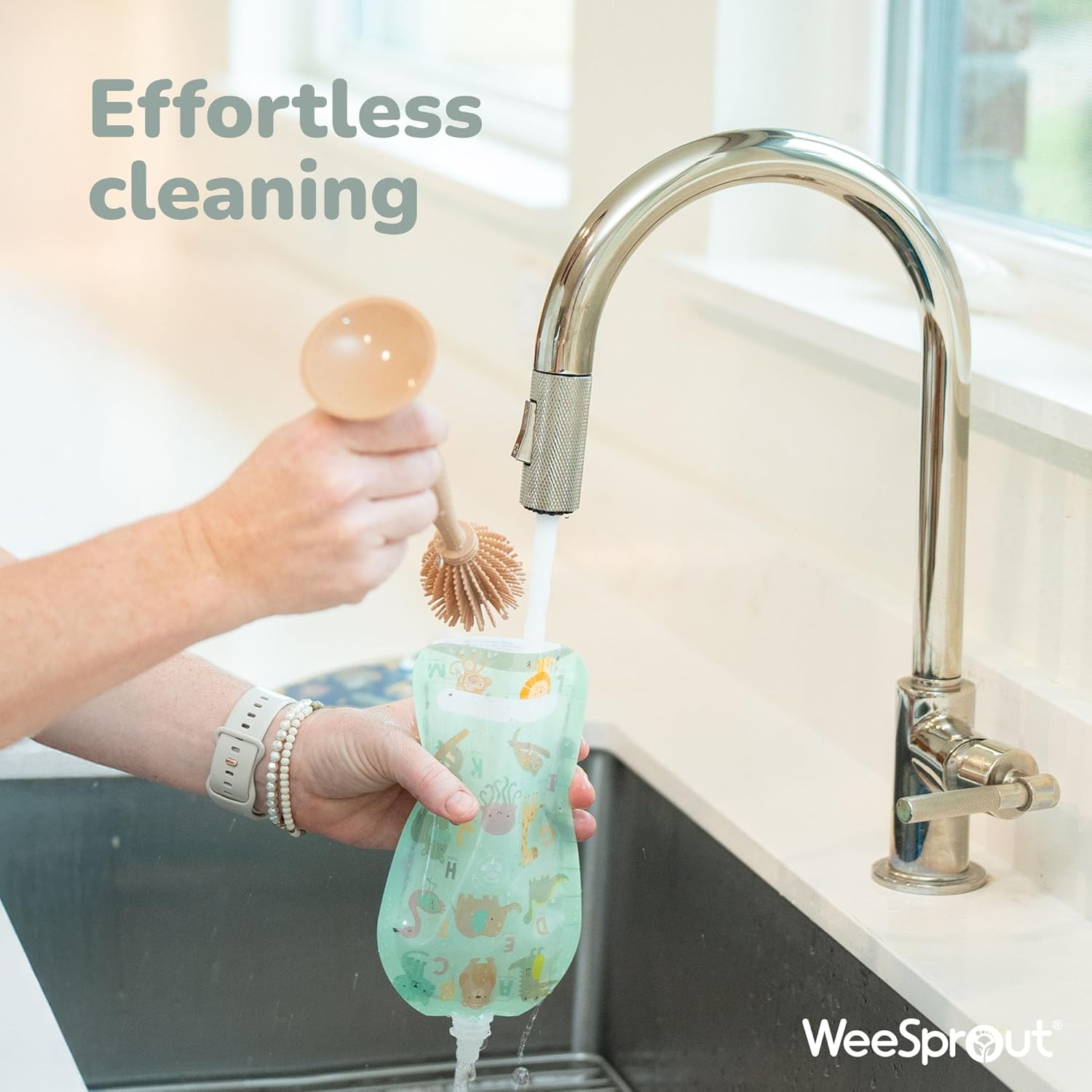 ✅ DISHWASHER SAFE AND MADE TO LAST – WeeSprout reusable pouches are 100% top rack dishwasher safe – and the curved design means there are no pesky corners or crevices for food to get stuck in. Or clean your pouches with a bottle brush if you’re in a rush. With thick plastic and durable construction, these pouches are made to last, wash after wash!