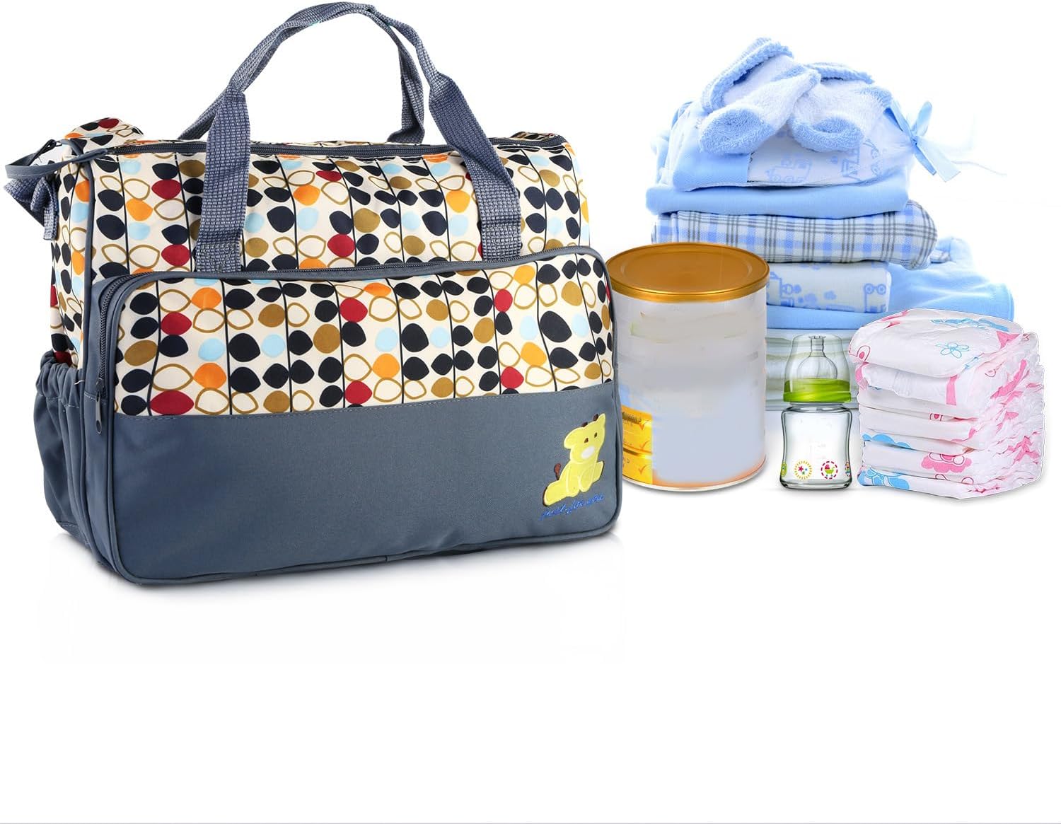 Comes with 4 different-sized bags and a changing diaper pad, packs baby essentials and personal items, such as cellphones, wallets, keys, diapers, etc. Wide opening and smooth zipper closure fetch items easily.
