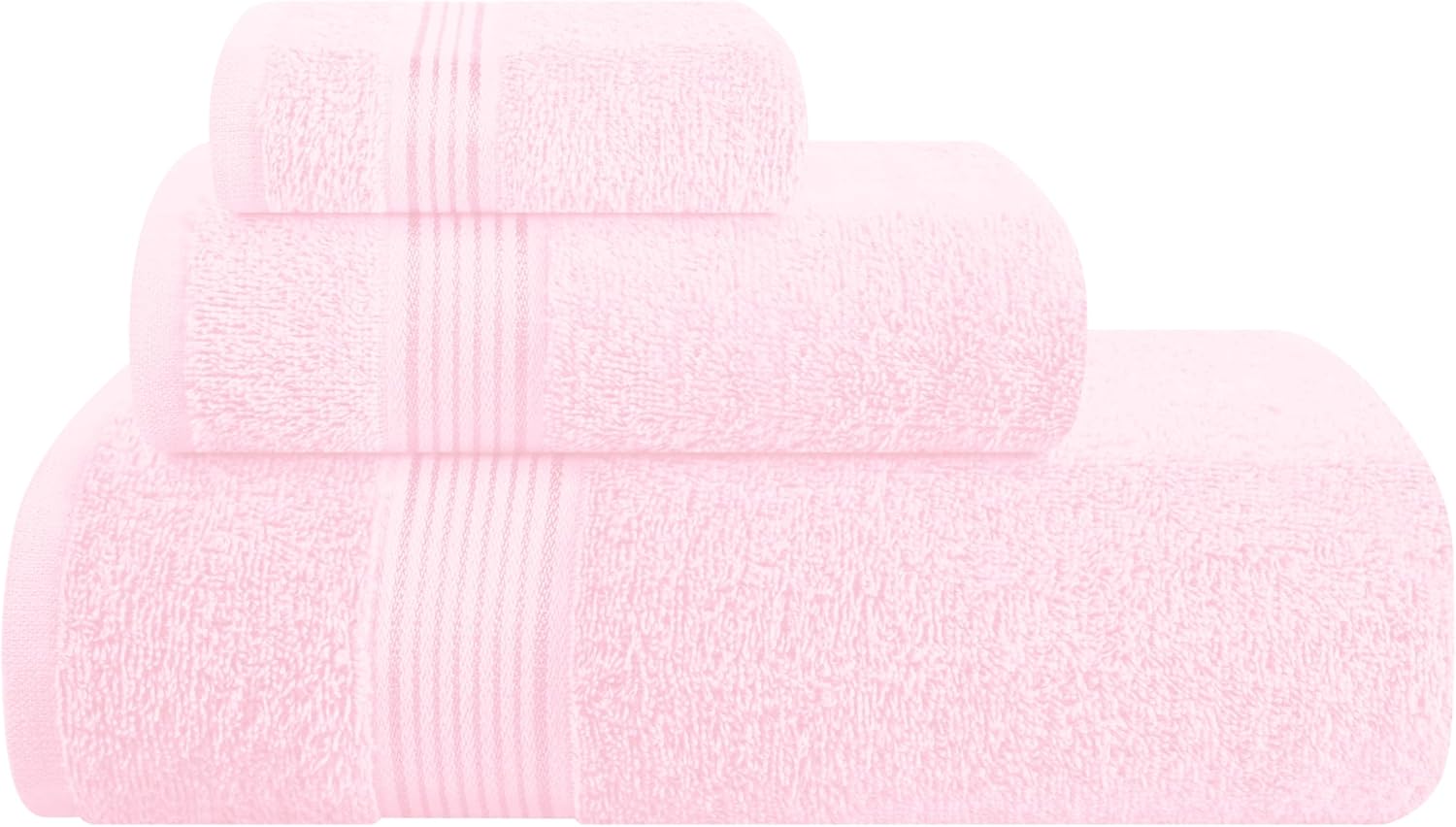 Each set contains one oversized bath towel 28×55 inches, one hand towel 16×24 inches & one wash cloth 12×12 inches