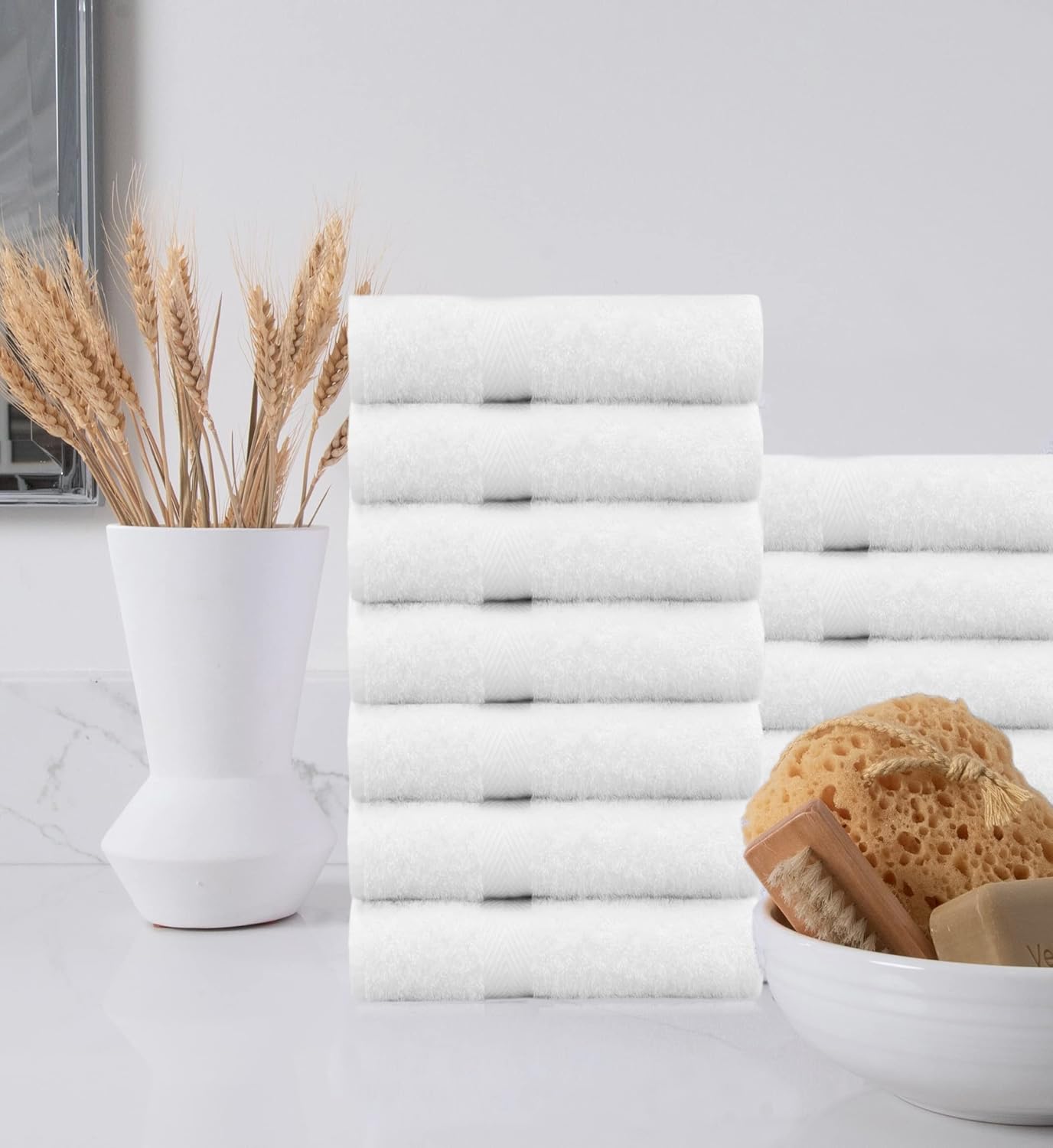 SET INCLUDES: Twenty-eight (28) COTTON CRAFT 12 inch x 12 inch Simplicity Wash Cloths in White