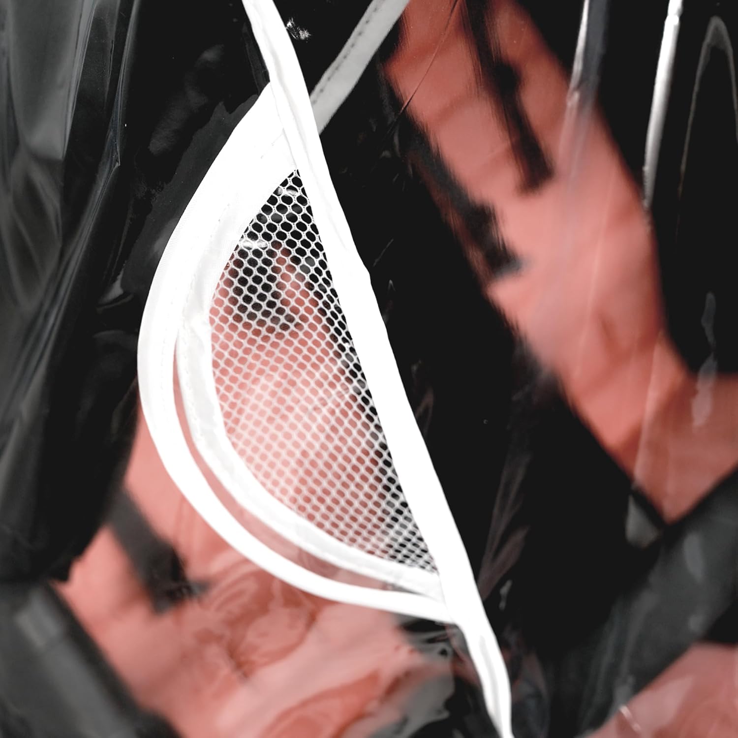 Premium Transparent Material – Crafted from safe and high-quality PVC, this rain cover is resistant to daily wear and tear. The clear design allows parents to easily check on their children, while kids can enjoy an unobstructed view of their surroundings.