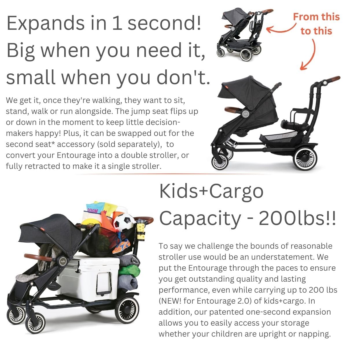 To carry your life in real time, the Entourage is 3-5 pounds heavier than a typical single-to-double stroller.