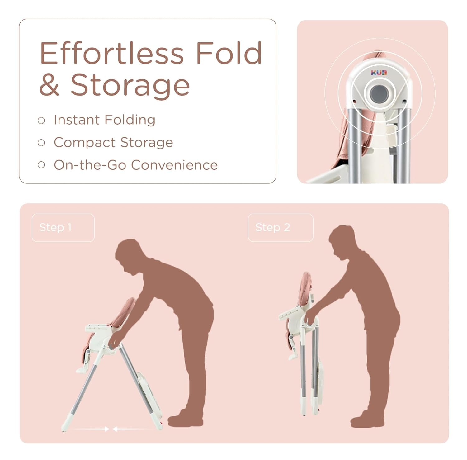 Portable&Easy: Use, clean, fold and store. Easy-to-remove seat for deep cleaning. No screws or wrenches. Our highchairs are fitted with a removable BPA-free plastic tray to unlatch and take it to the sink. Also has a polyurethane high chair cover for quick and easy cleaning. It can be folded away in a matter of seconds to save space when they are not in use.