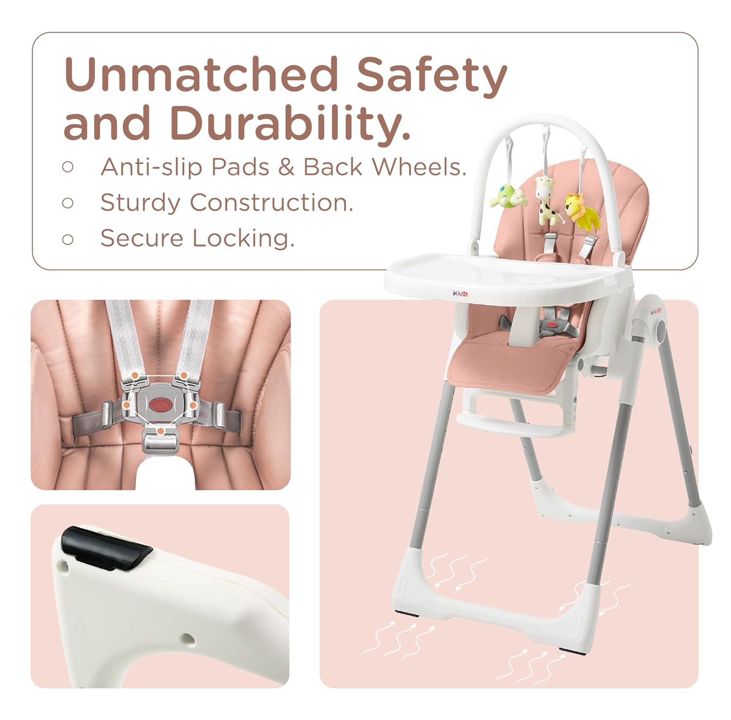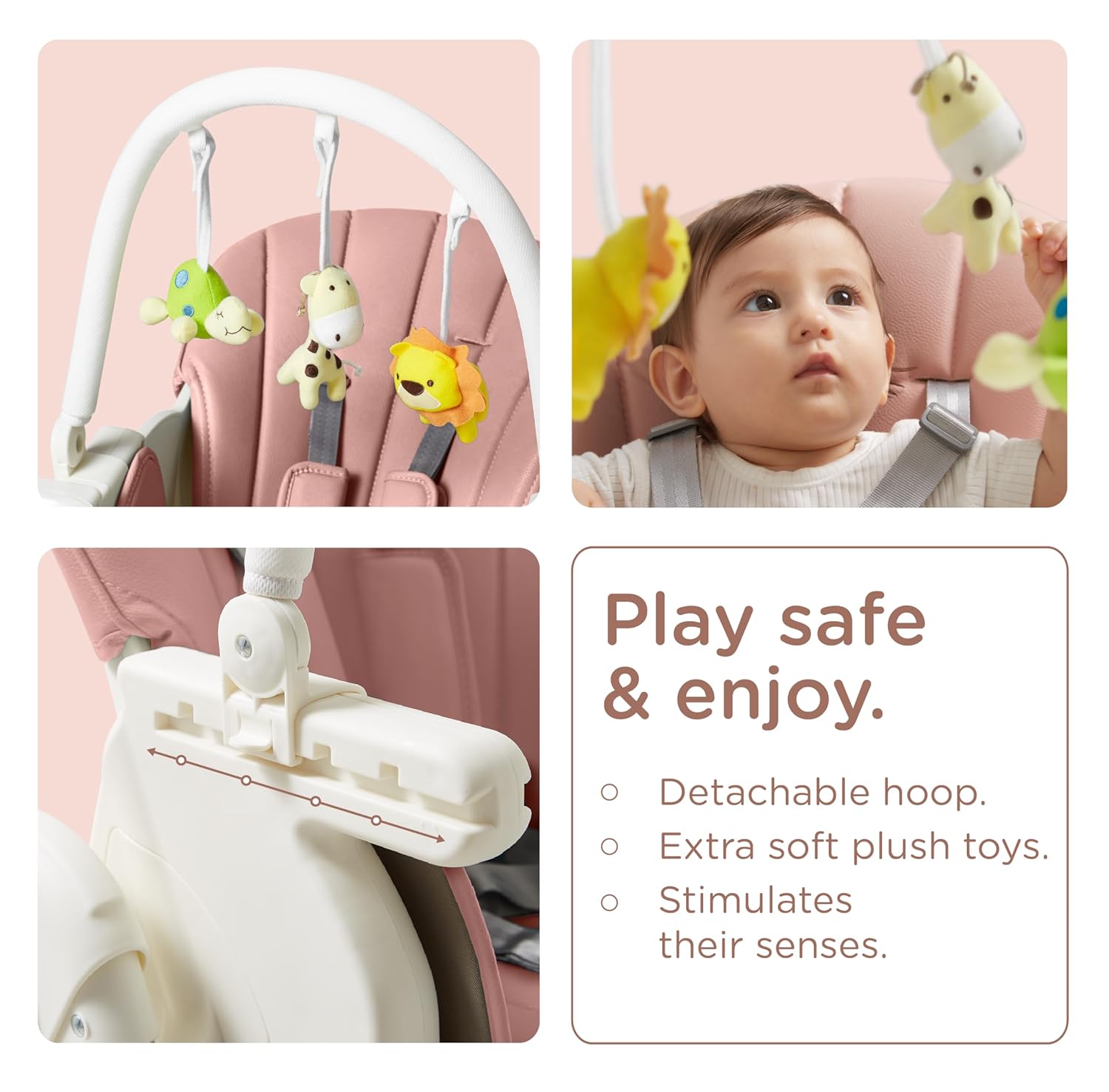 Childhood Joy: comes with a free high chair toys arch, the position and angle of the toys arch can be adjusted at will, and individual toys can be easily disassembled. so your little one will never get bored, this perfect baby high chair is cute and fun for bebe. (Please note: Due to manufacturing updates, toys on the toy arch may vary between detachable or fixed designs by batch. )