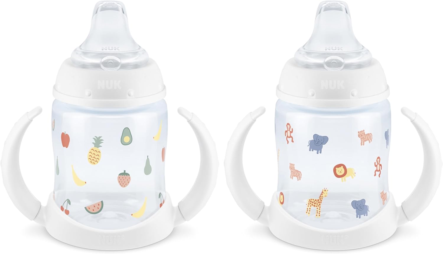 The NUK Learner Cup easily promotes baby’s transition from breast or bottle to sippy cup. This learner cup features a spill-proof soft spout that is gentle on teeth and gums, and it includes an air vent that helps reduce swallowed air. The cup also comes with easy-to-grip, removable handles that your growing child will love. NUK Learner Cups are BPA-free and dishwasher-safe. Our 5-oz. learner cups are recommended for ages 6 months and older.