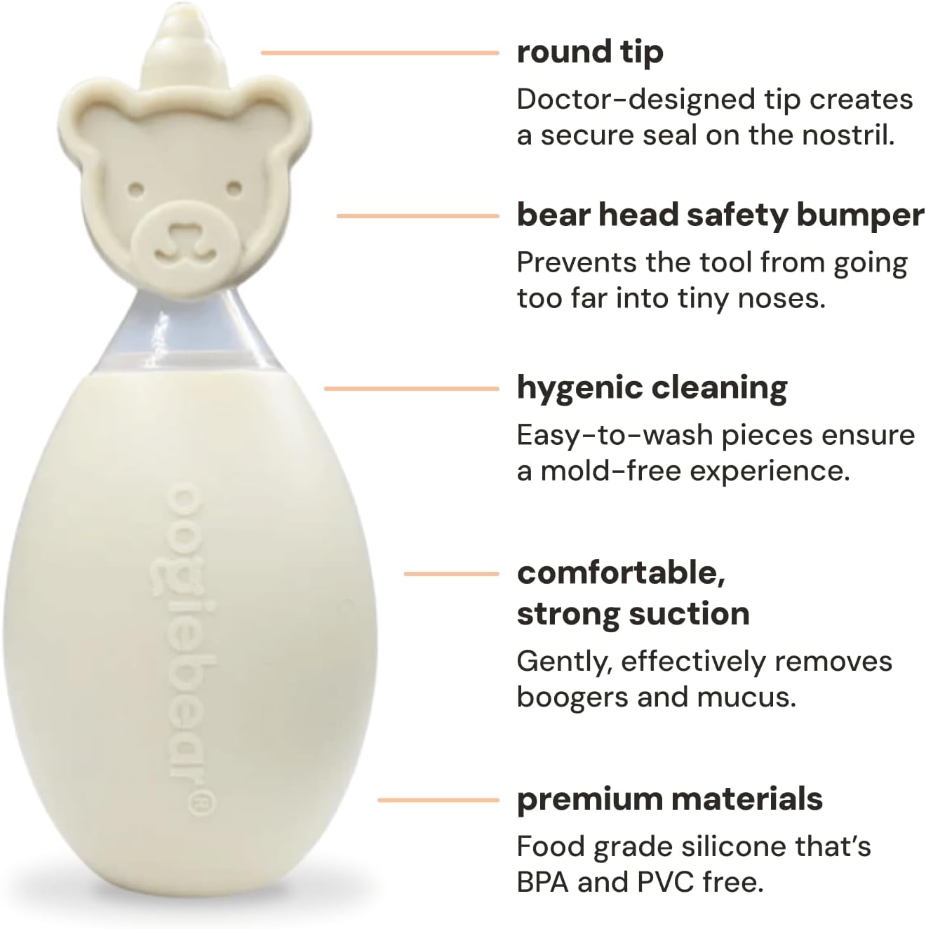 Say goodbye to stubborn baby boogers and ear wax! This doctor-designed solution makes caring for congestion a breeze with simple, effective, gentle, and safe tools. Choose your favorite set color and let your baby fall in love with our signature, adorable bear pair!