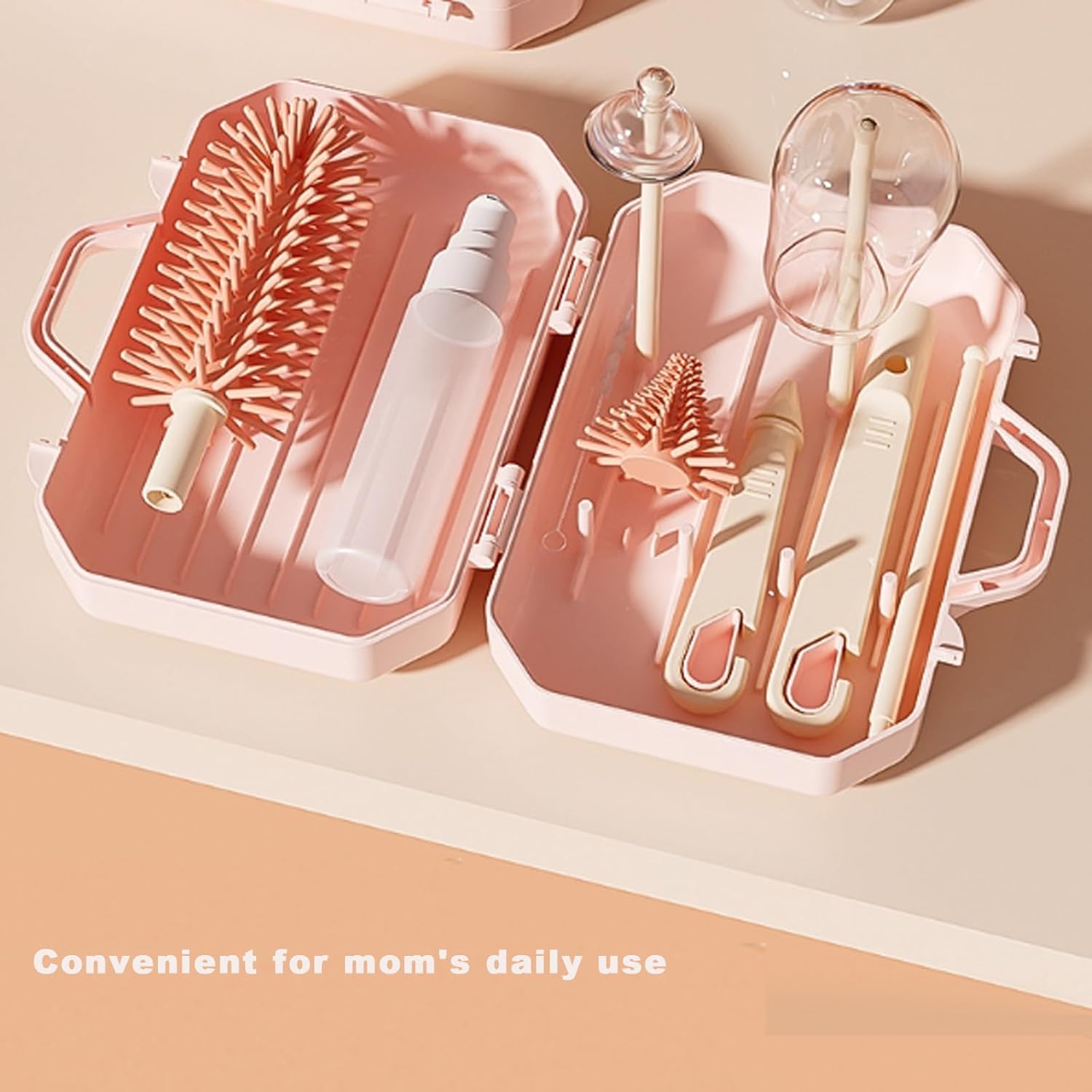 Portable & Travel-Friendly Design: This Bottle Brush Set comes with a compact travel case, making it easy to carry and store. Perfect for on-the-go parents who need a reliable cleaning solution for baby bottles, sippy cups, and accessories