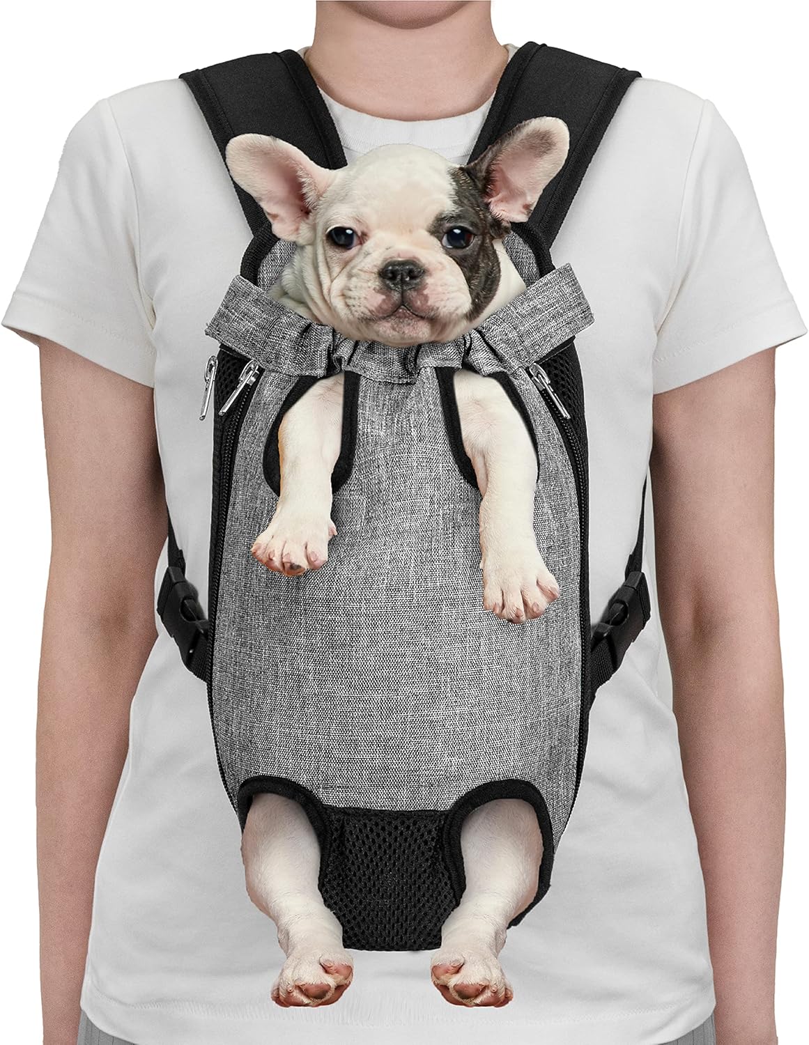 FRONT DOG PET CARRIER: Weight Suggestion 5-9 lbs, Chest Girth 14 inches, Front to Rear Leg Distance 4.5 Inches, Leg Circumference 10 inches. Conveniently and comfortably carry your dog, pet, cat with you while you are out hiking, traveling, walking, or any outdoor use. Securely strap your dog with our carrier so you can enjoy more adventures together!