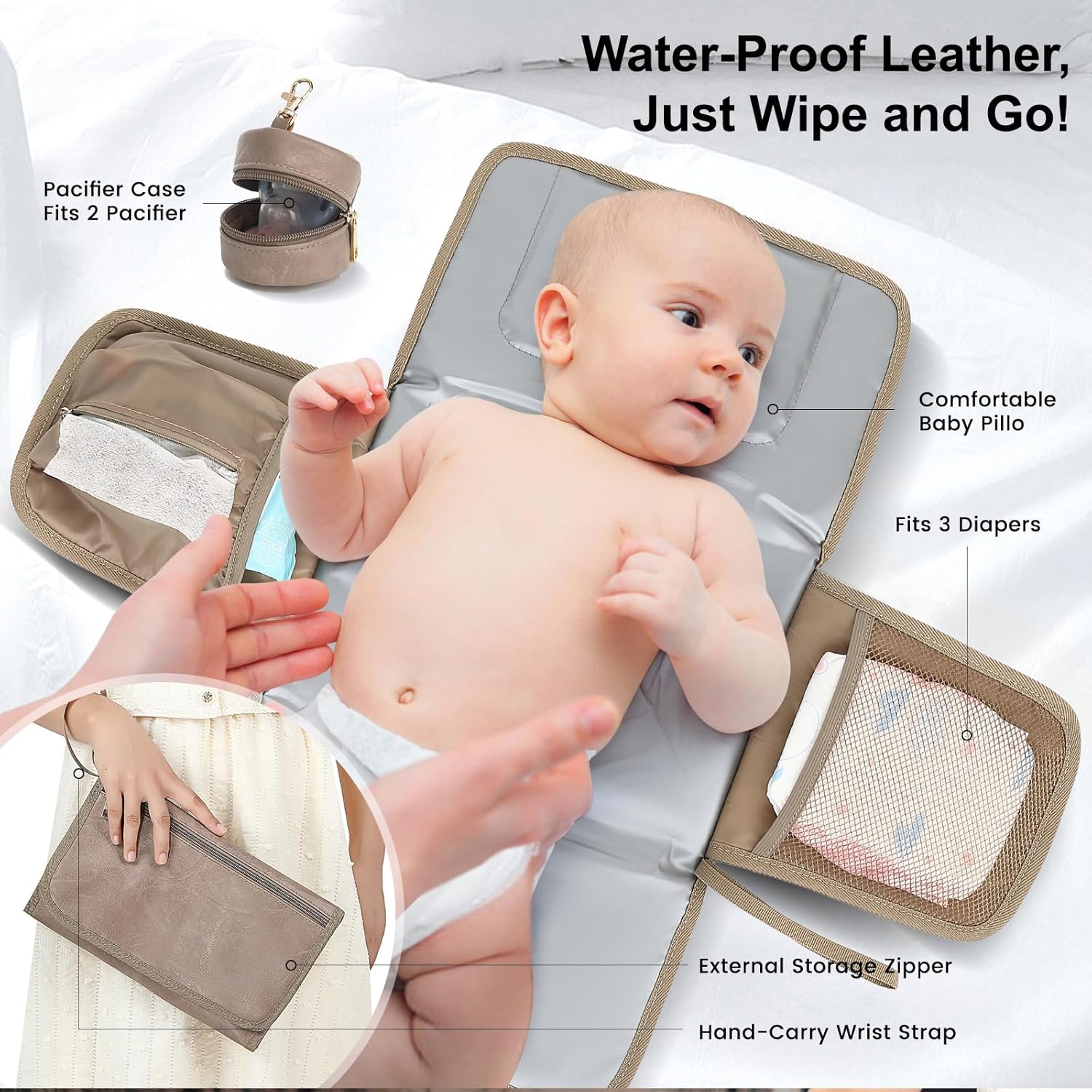 Fast Access & Complete Essentials – Our unique back-panel design lets you grab diapers or wipes in just 3 seconds—no frantic digging required. Comes with a foldable waterproof changing mat (23×13 in), a detachable pacifier case, and stroller straps that free your hands on the go. Perfect for everything from daycare drop-offs to weekend outings.