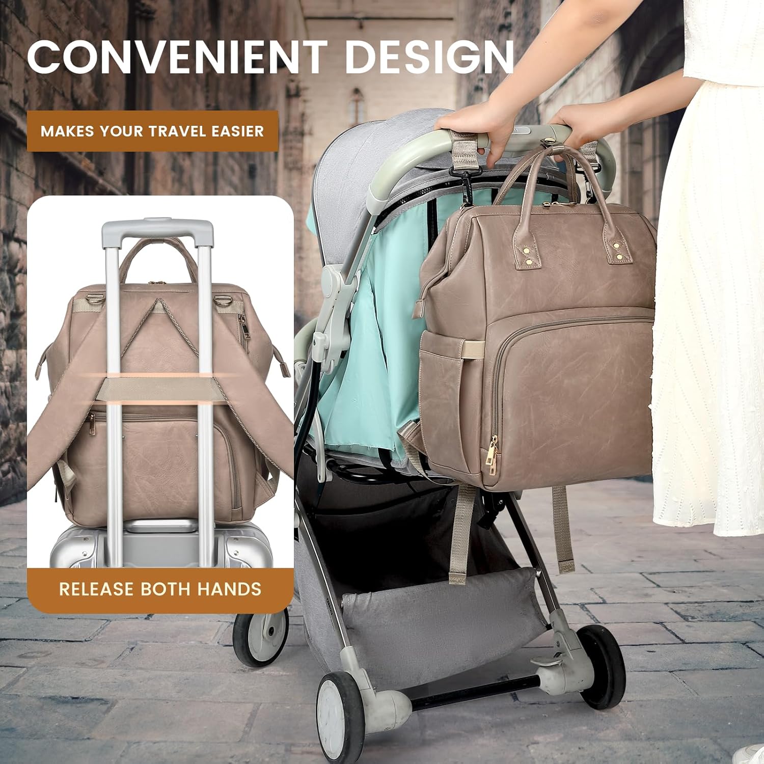 Style & Travel-Ready Comfort – Airline carry-on friendly, this sleek diaper bag is your perfect travel companion. Crafted from buttery-soft vegan leather, it combines modern style with everyday versatility. Wear it as a backpack, carry it as a tote, attach it to your stroller, or slide it over your suitcase handle. Breathable padded straps and an ergonomic design keep you comfortable all day.