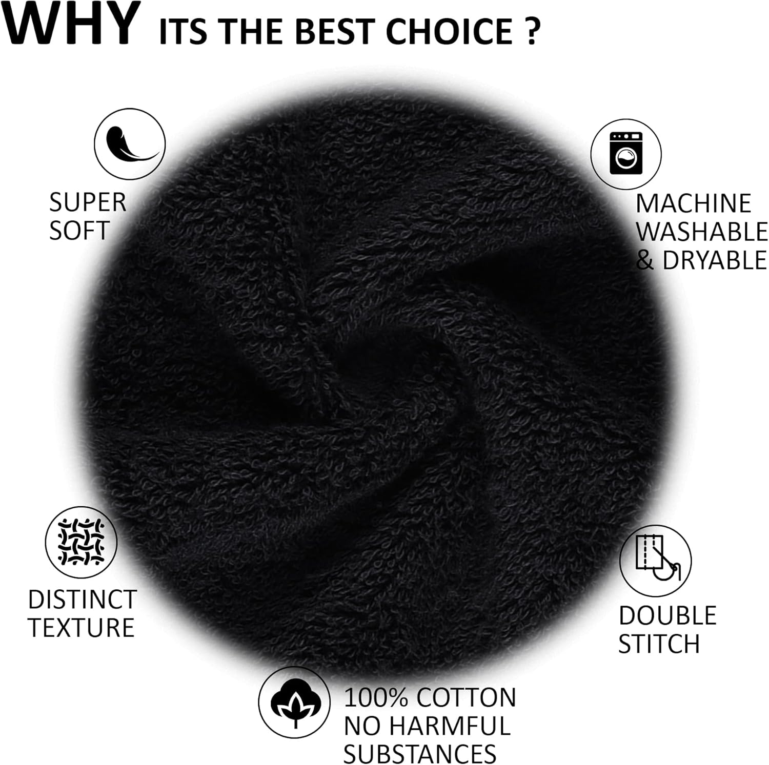 Quick-Dry, Soft & High Absorbent Washcloths Towels 13″x13″ Cotton Turkish Bath Towel Set of 4 | Daily Use 100% Cotton Towels for Bathroom Gym & More | Bathroom Towels Set (4 Pcs, Black)