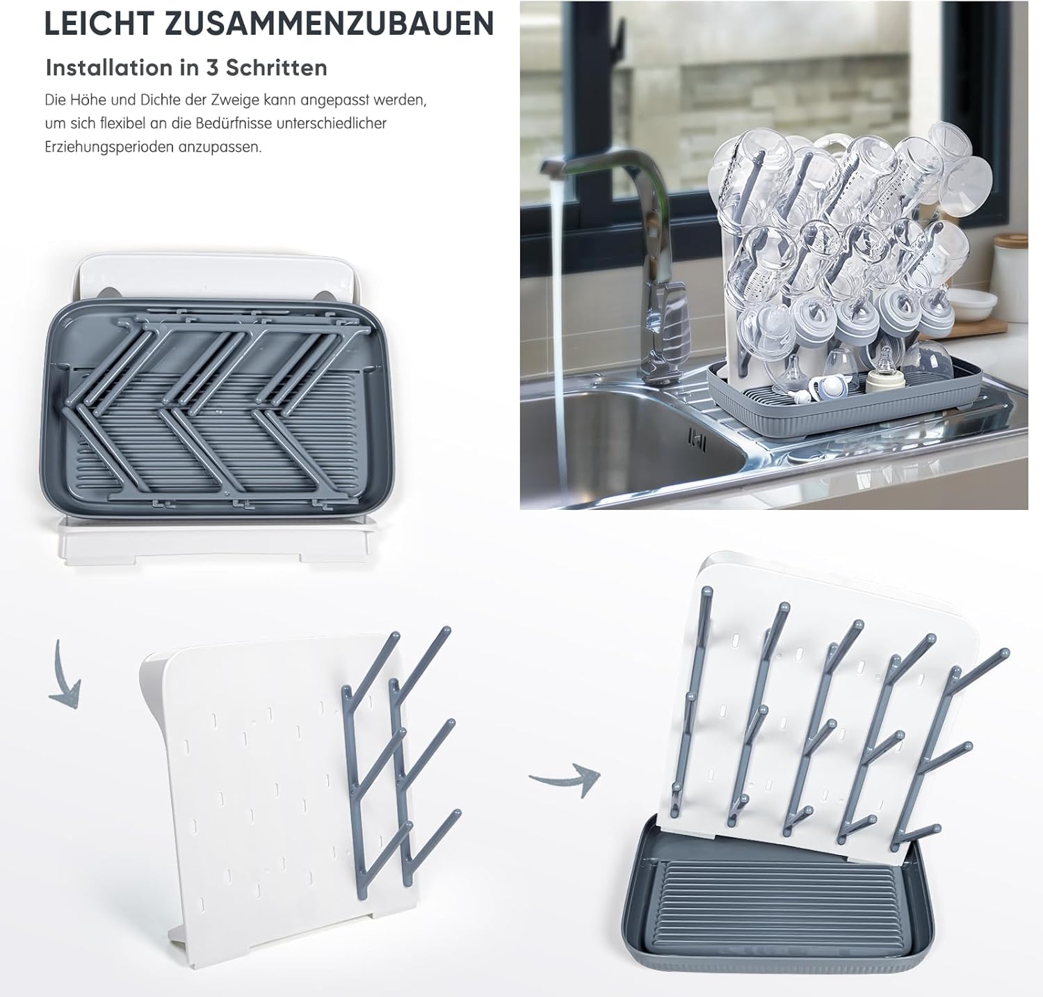 SPACE SAVING: The bottle drying rack is designed for your different baby bottle kitchen storage organization. They keep baby small parts away from water and smaller countertop space.