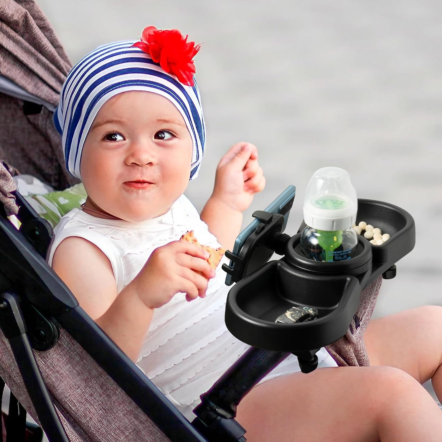 Multifunctional: With a drink holder, cell phone holder and snack tray all in one, our stroller tray allows for multiple activities to be enjoyed at the same time while baby is on the go, keeping everything within reach.