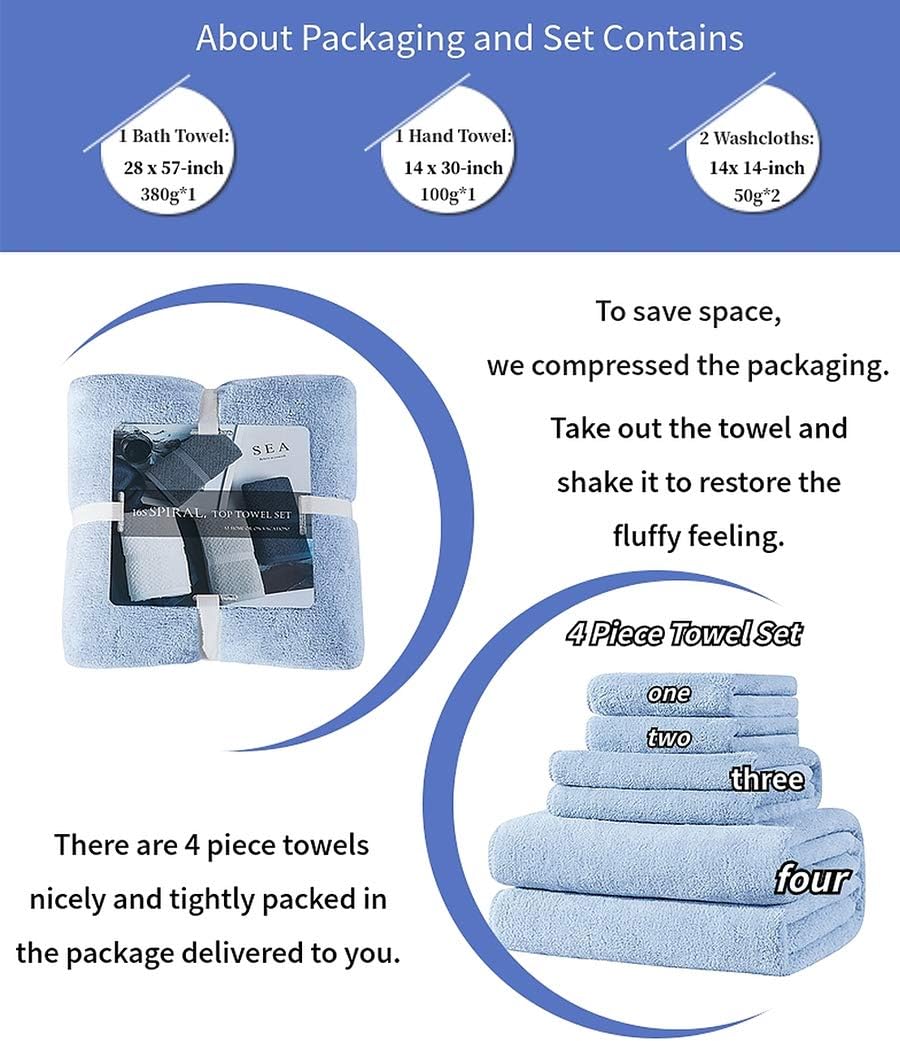 Xinrjojo 4 Piece Microfiber Quick Dry Towel Soft Plush Absorbent- Blue