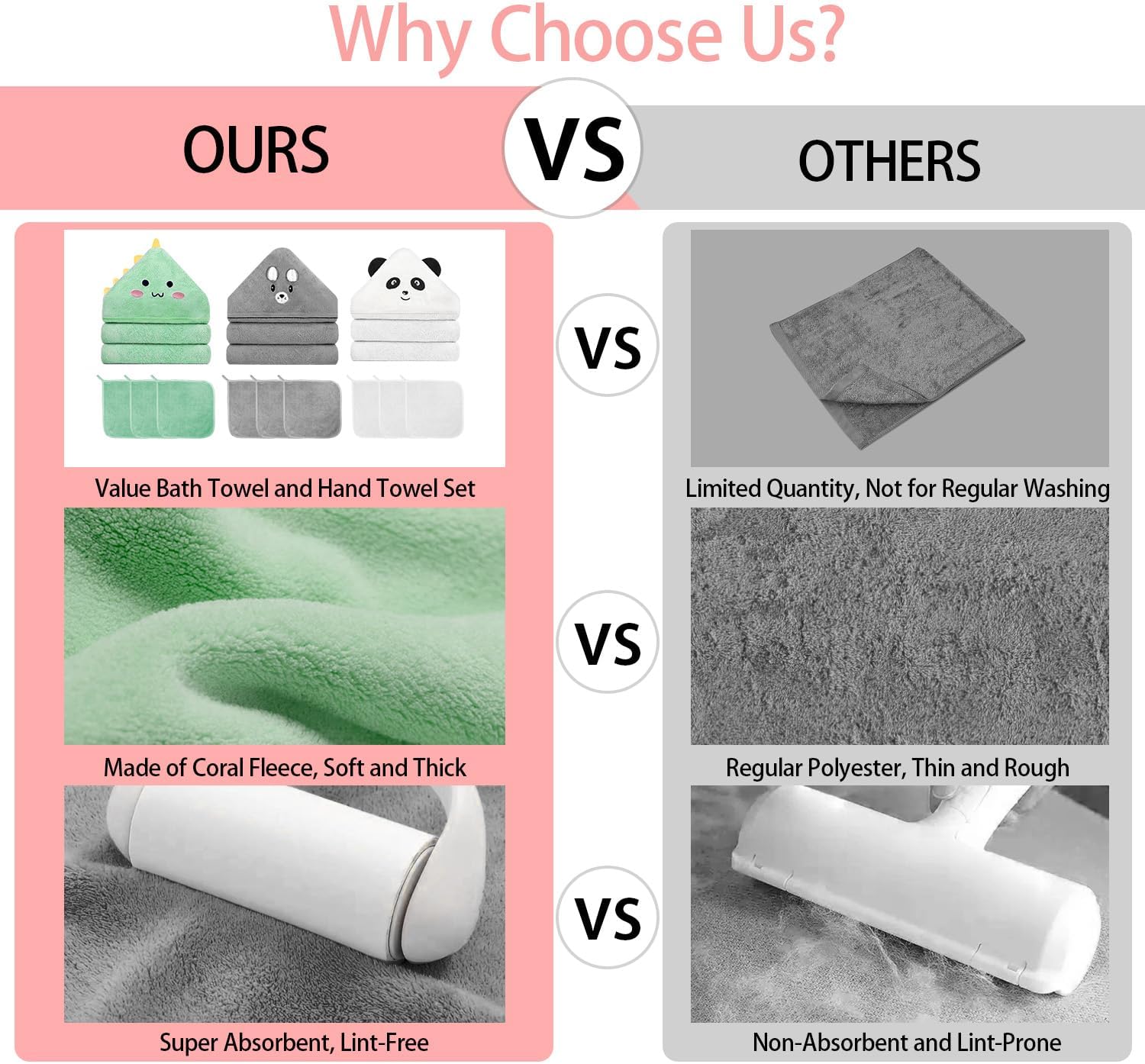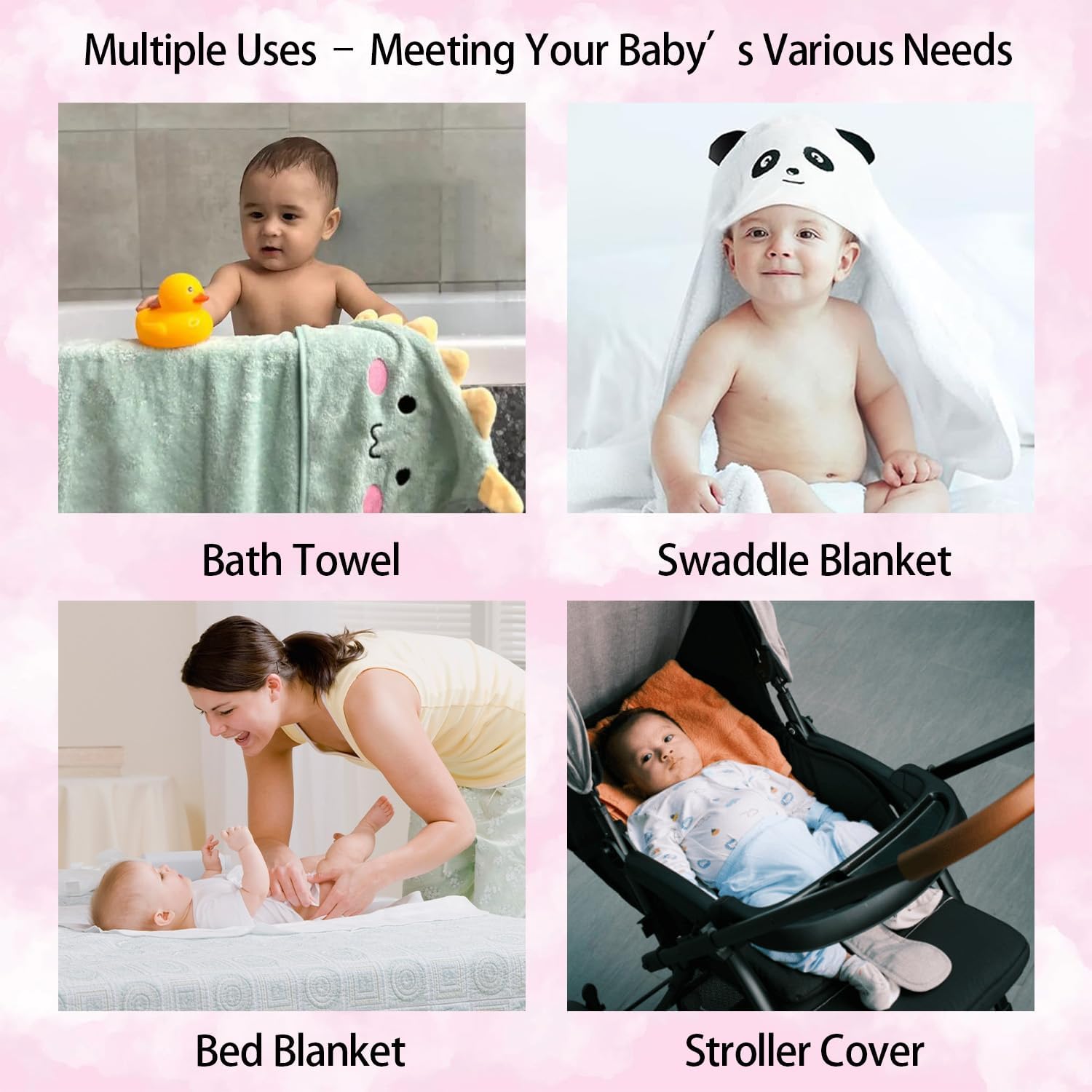 Soft and Absorbent Baby Bath Towels: The bath towels are made of high-quality coral fleece material, super soft and highly absorbent, quickly drying your baby’s hair and body while keeping them dry and comfortable. They are gentle on your baby’s delicate and sensitive skin, without irritation.