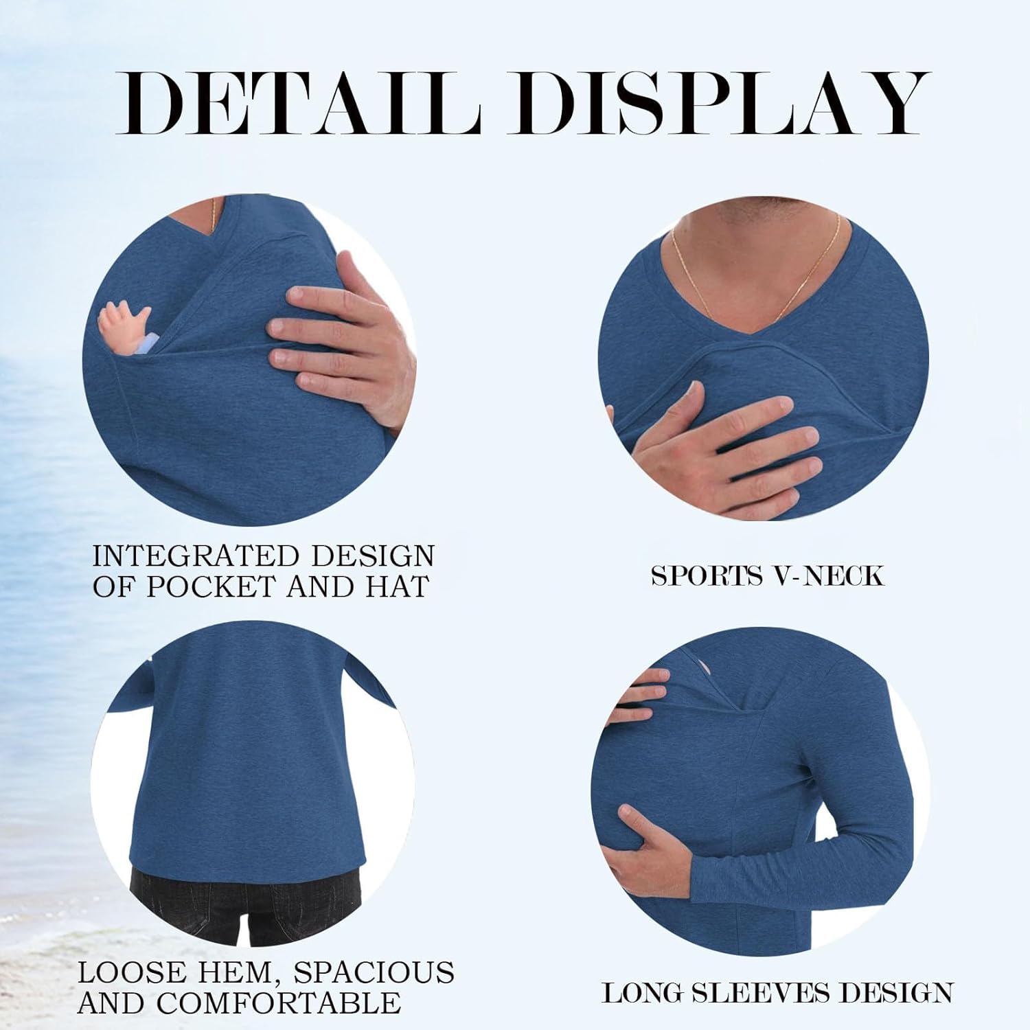 1. Integrated Design Of Pocket And Hat: Kangaroo pouch shirt for dad features a sporty V-neck, slim fit long sleeved design, integrated pockets, and hat.