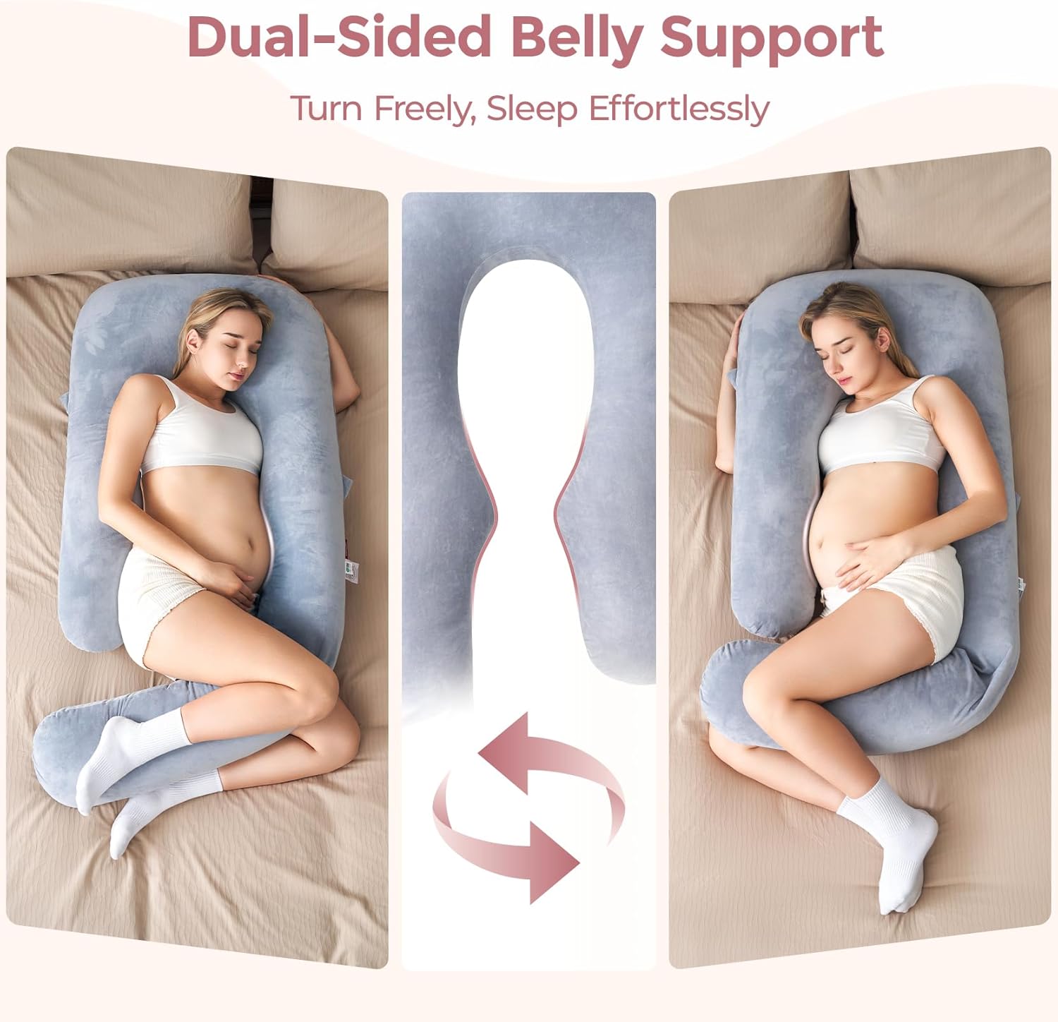 Ergonomic Full-Body Support – Designed with 5-point contouring to cradle your head, back, belly, hips, and legs in optimal alignment. This pregnancy body pillow adapts to your body’s pressure points, promoting blood circulation, reducing back pain and hip strain while maintaining natural spinal alignment for deeper, restorative sleep.