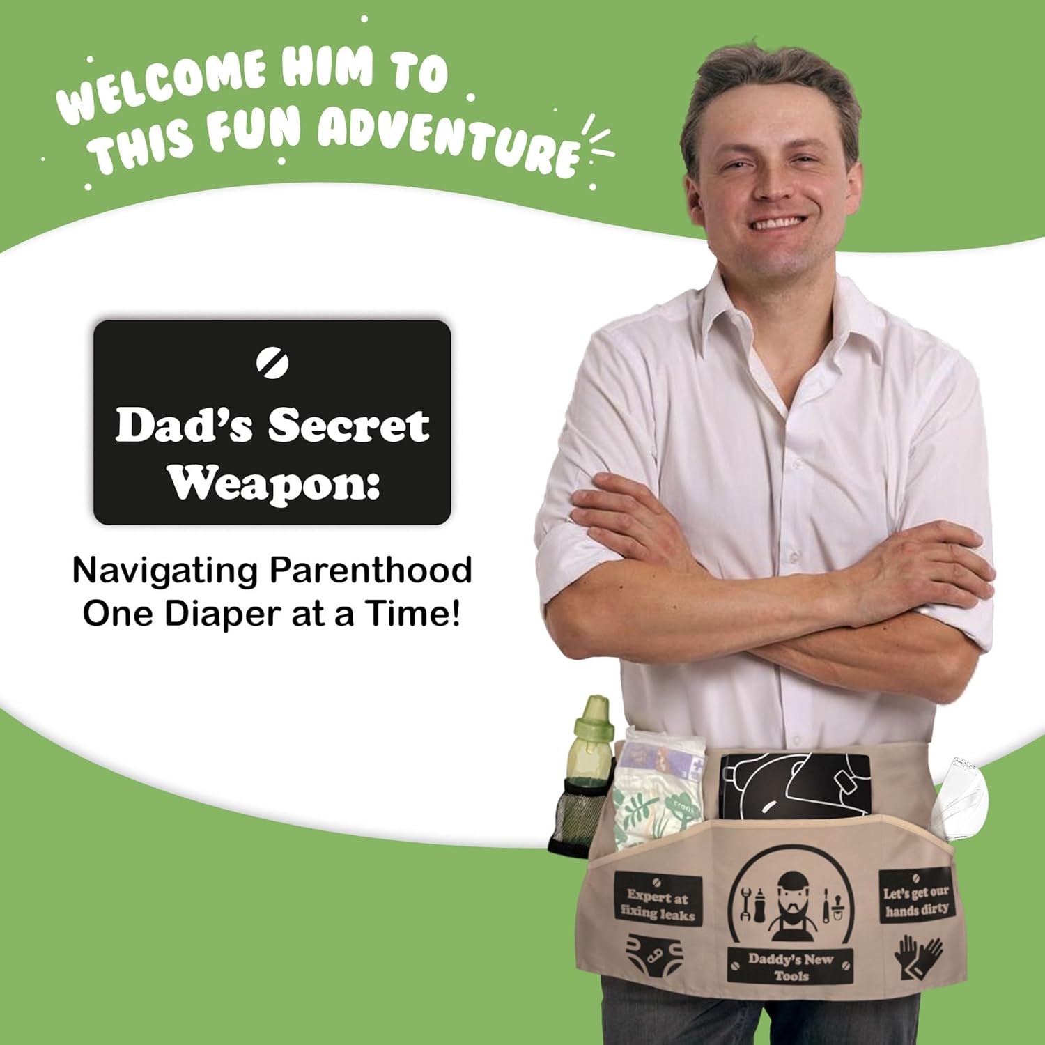Things are changing. It is time to change the beer bottles to feeding bottles. It is time to change the coffee cup to a sippy cup. This toolbelt is a hilarious present to give to the new daddy to be. When the pregnancy phase is over and the babies are all grown up, these type of gifts are the best for safe keeping to look back to after the years have passed. This toolbelt is small enough to fit into a diaperbag, that way husband and wife are always prepared, no matter where they travel to. This apron is adjustable to fit an adult. Now everyone can help!.Get it as a christmas, valentines, birthday, or ahower present.