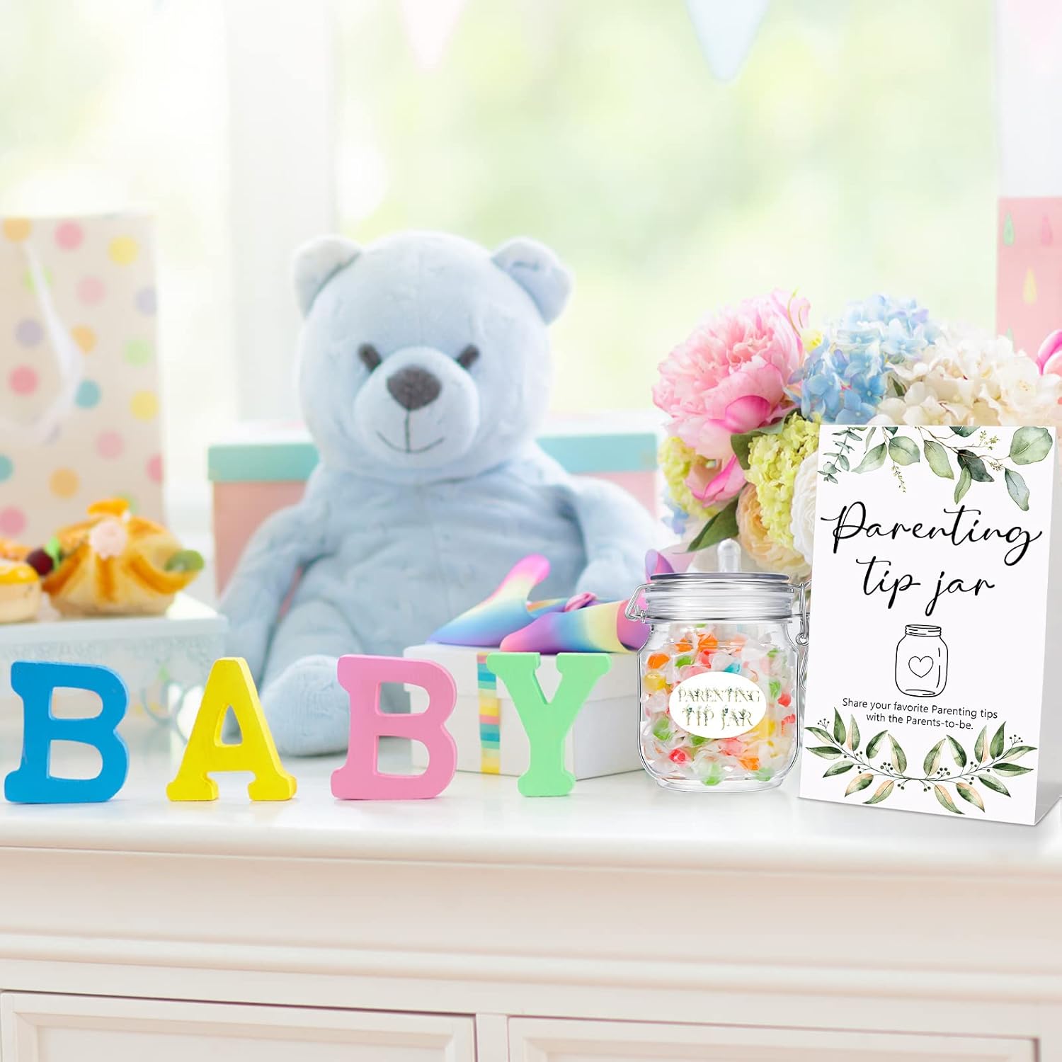 Conspicuous Design: these baby shower party favors are beautiful and attractive, and the green leaves patterns will increase an elegant atmosphere, add a fresh and exquisite style to your party