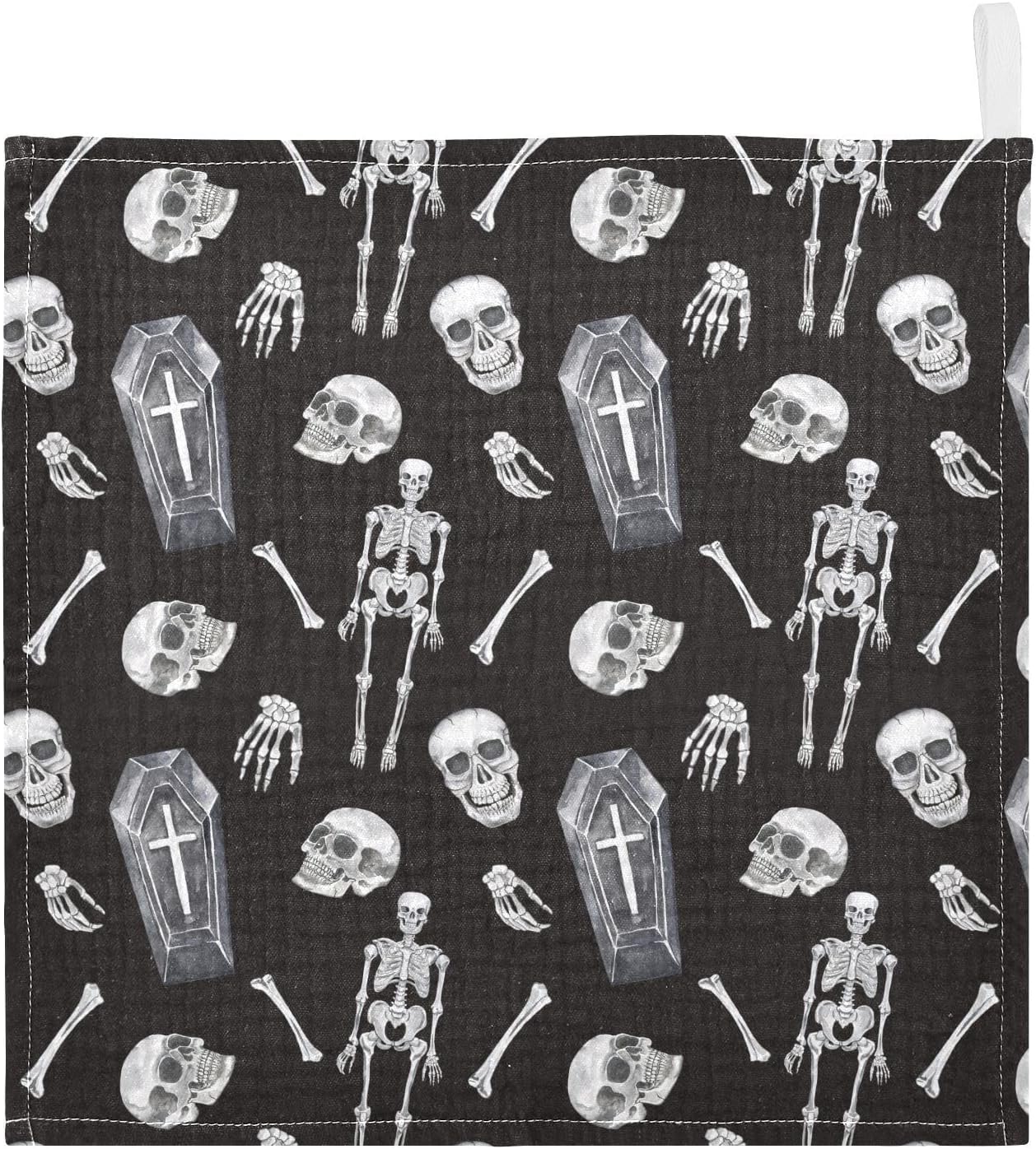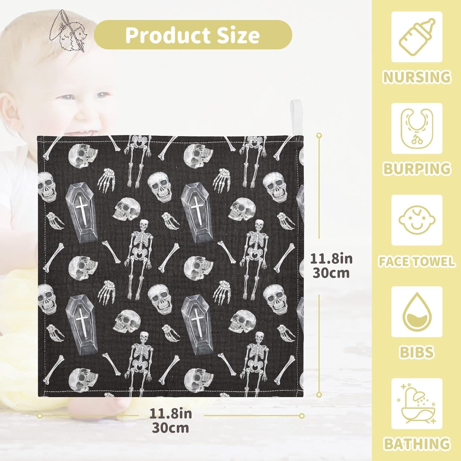 vvfelixl Baby Washcloths Cotton Creepy Skull Baby Muslin Washcloths Soft Baby Face Towel for Newborn Infants, 11.8 X 11.8 Inch, 3 Pack Black