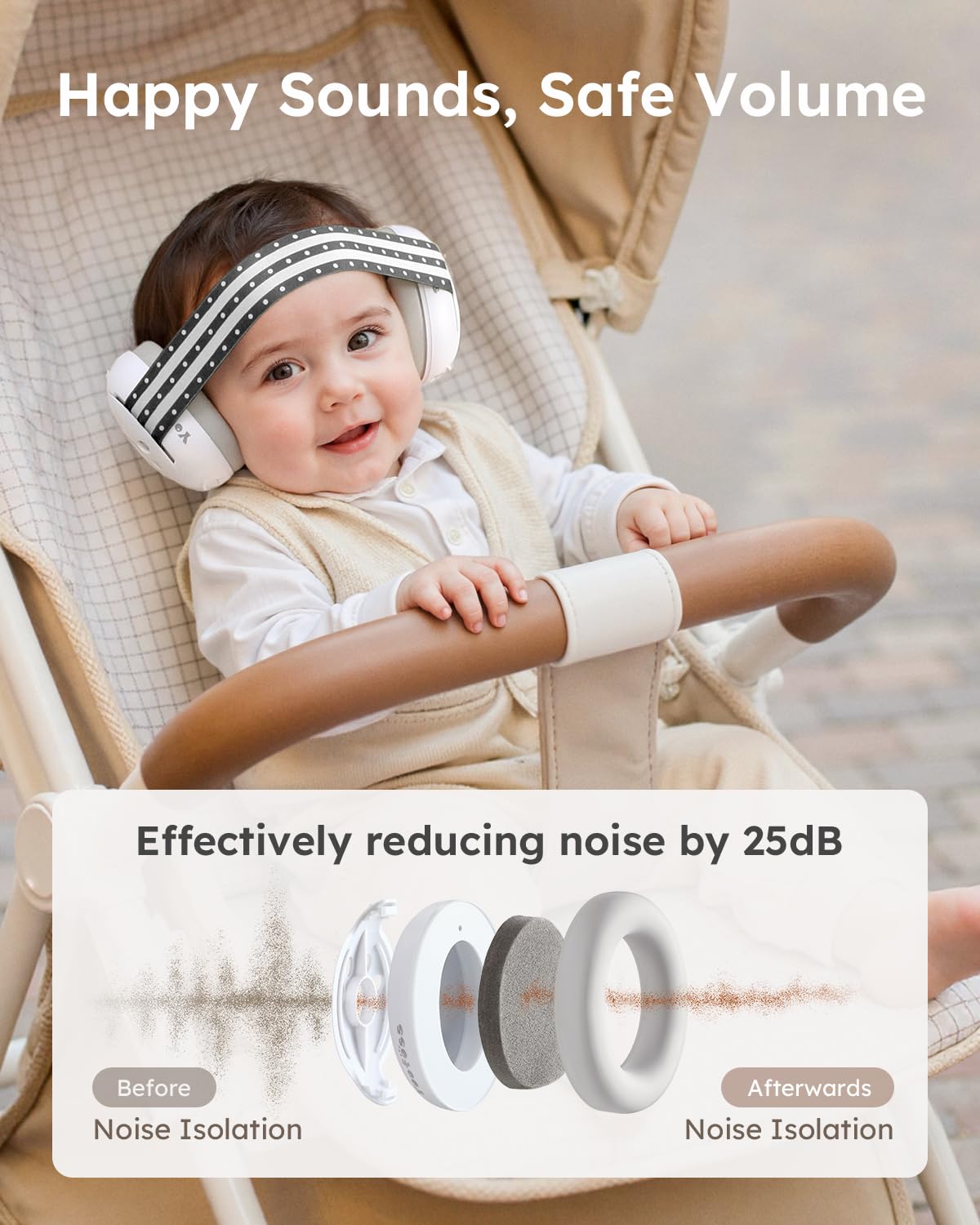 Safe and Comfortable: The soft baby headphones for noise insert with professional noise reduction sponge, covered with artificial leather, and have good closure. After professional laboratory testing, our baby noise reduction earmuffs can achieve a noise reduction effect of 25db; the outer shell is made of ABS, which is sturdy and durable. It does not contain harmful chemicals such as BPA and silicone. It is friendly and non-irritating to the baby’s delicate skin.