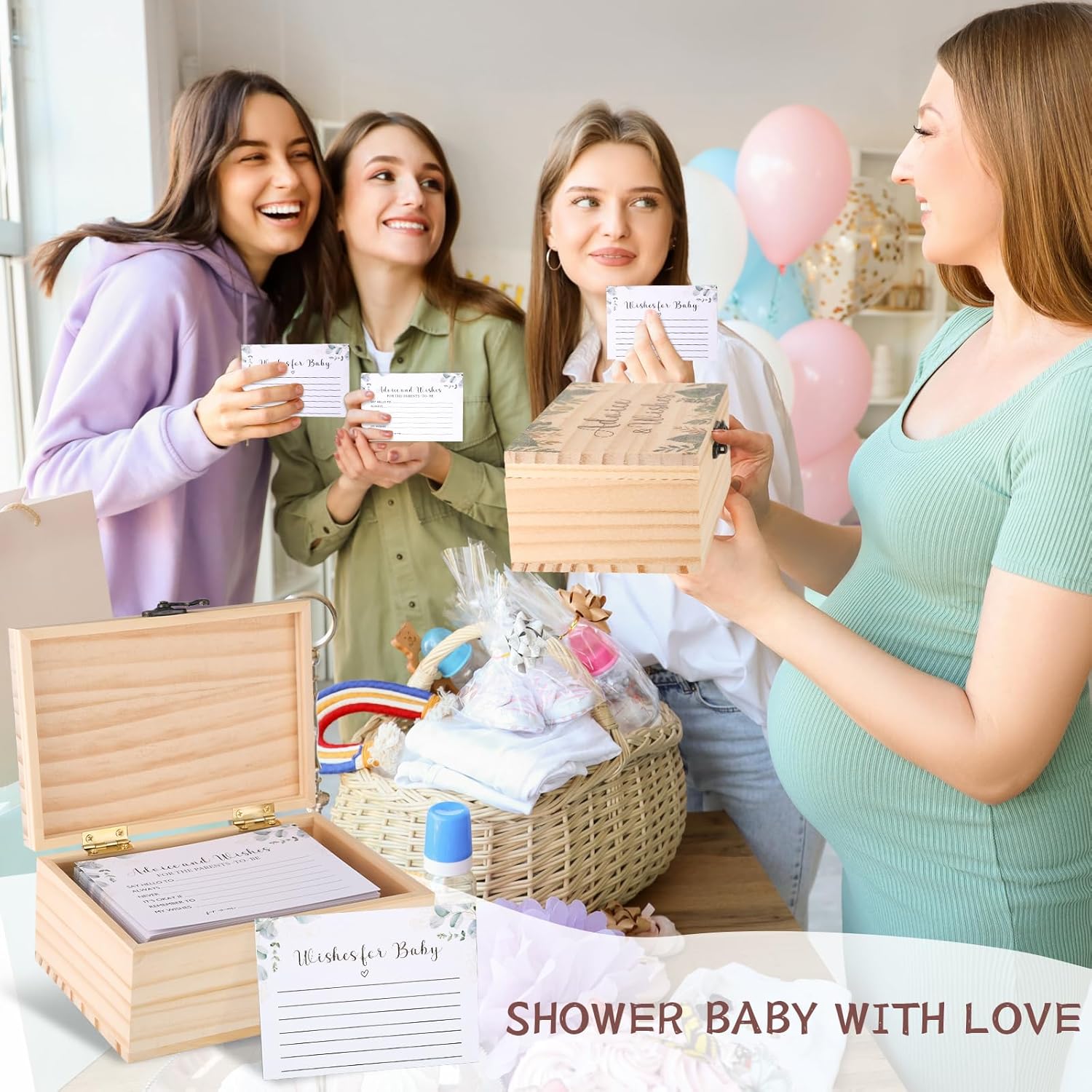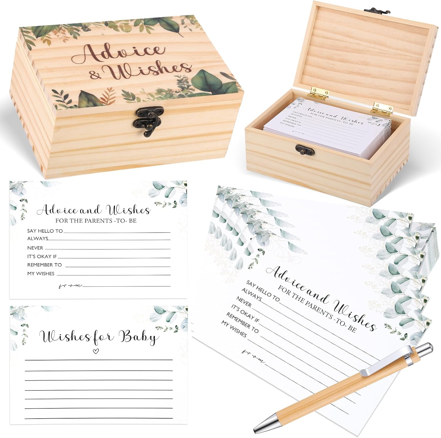 60 Pcs Baby Shower Advice Cards Wooden Advice and Wishes Cards Box for New Parents Baby Shower Game Decorations Party Favors