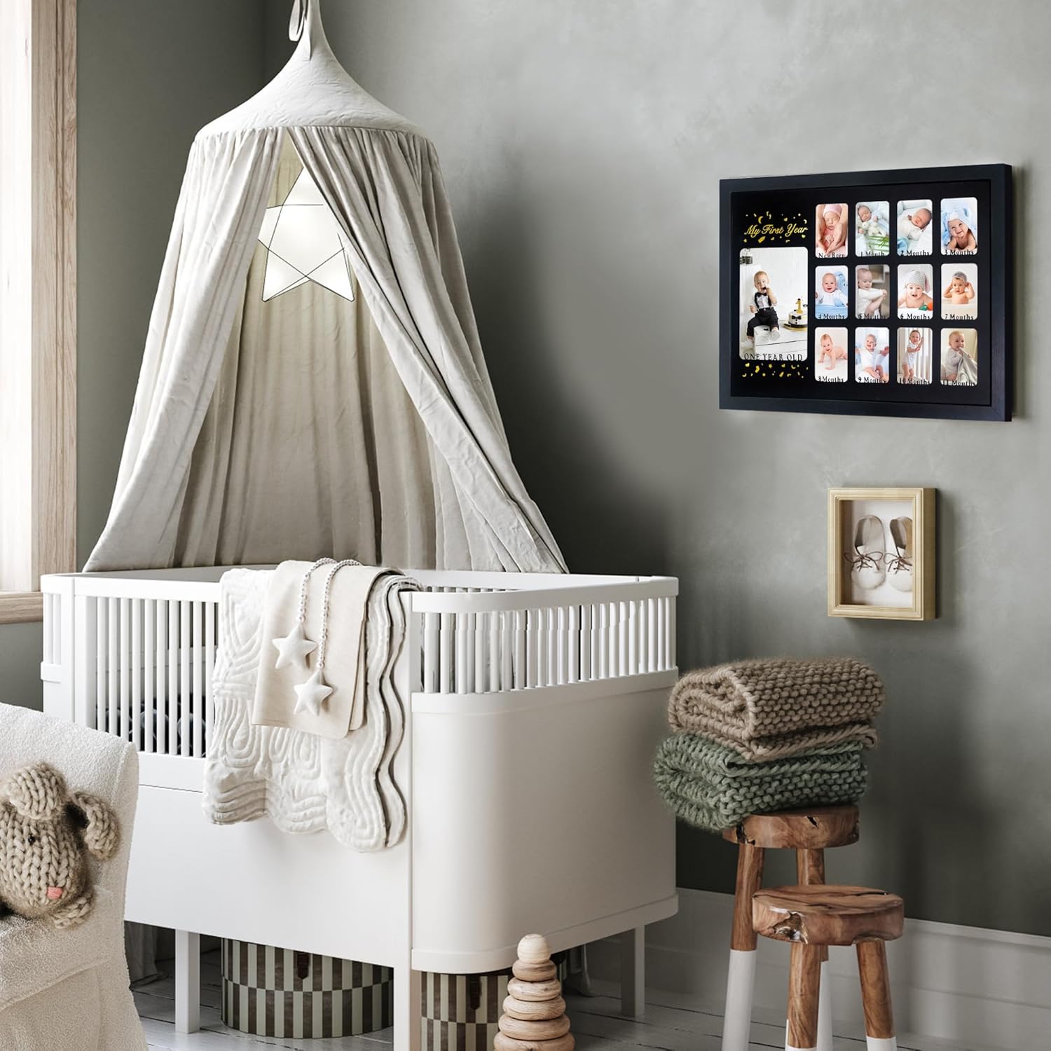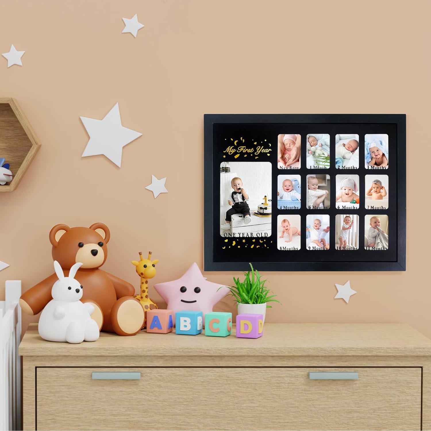 Baby First Years Photo Frames 12 Month Picture Frame 12 * 16 for Holds (1) 5×7 & (12) 2×3 Wallet Size Photos Black