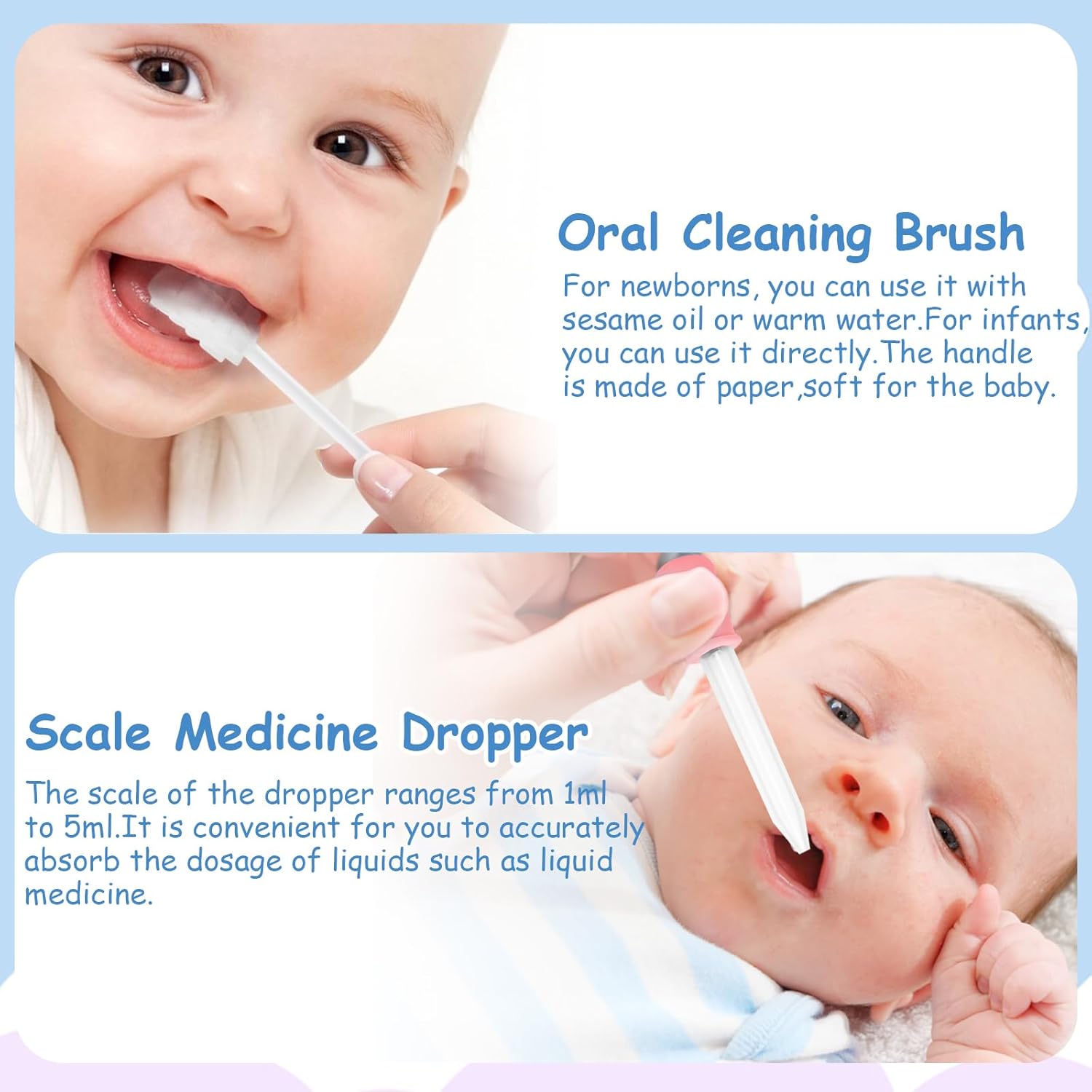 👧【Perfect Baby Care Set】The accessories of each baby health kit are specially designed for babies, thoughtful and practical. Gentle silicone finger toothbrush to clean baby’s teeth and tongue; Nasal aspirator tip is small and flexible, more suitable for baby’s nose; Ear cleaner with LED light, convenient for cleaning and observing baby’s little ears. Providing the best daily care for your baby in all aspects.