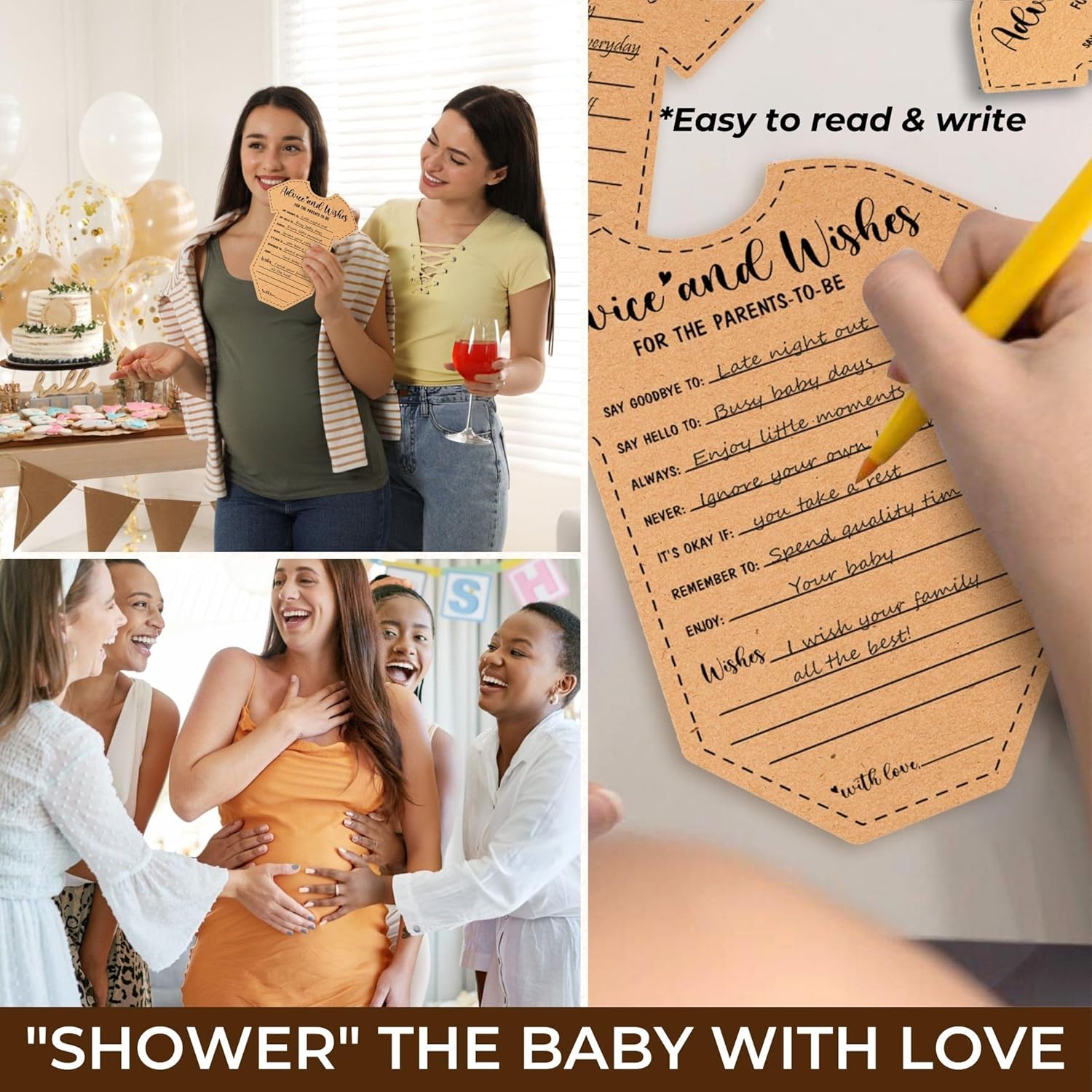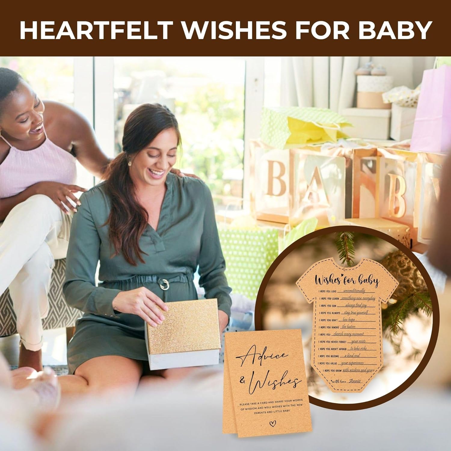 Baby Shower Advice Cards for Parents To Be – 50 Pcs Baby Advice Cards for Baby Shower Ideas, Advice and Wishes Cards for Rustic Baby Shower Decorations, Gender Neutral Baby Shower Game