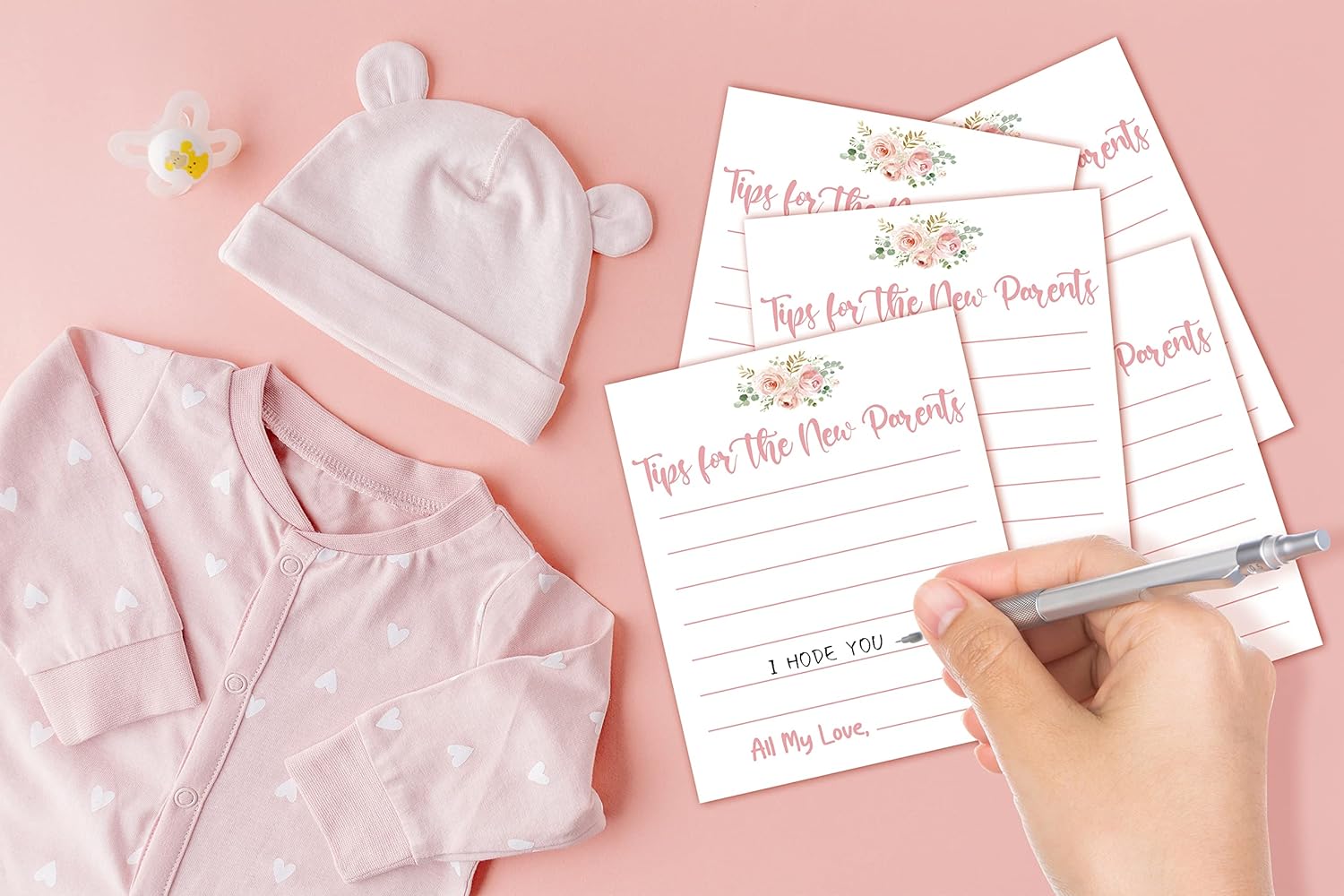 The size of the standing sign is 5″x7″, double-sided design; the size of the blank advice card is 4″x3.5″, easy to carry and write. These cards feature a simple “Tips for the new parents” design, making them versatile enough for any occasion.