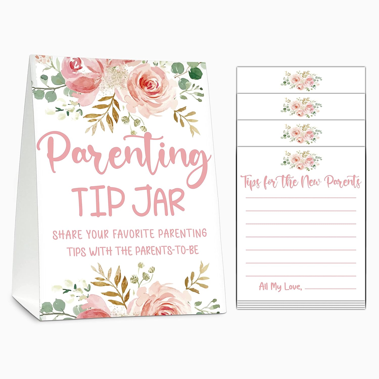 1)Each pack including: 1 self-standing double sided sign, 20 blank advice cards, which could meet enough guests party requirement with only one pack of our game card set. 2)The size of the standing sign is 5″x7″, double-sided design; the size of the blank advice card is 4″x3.5″, easy to carry and write. These cards feature a simple “Parenting TIP JAR” design, making them versatile enough for any occasion. 3)The standing sign is made of 300 grams coated paper, thick and hard enough to self-stand no frame needed, which can stand independently. Besides, we use advanced printing technology to print rich and bright colors on high-quality cardboard. All blank advice cards are made from a thick and heavy-duty paper, which is much more elegant and easy for writing with many pen types. Single-sided printing in rich, beautiful colors. 4)This baby shower game set is a sweet party activity. Set them around during the shower and watch as guests leave their special advice and wisdom to expectant parents. 5)Invite your guests to share well wishes and pieces of advice at your Baby Shower, Gender Reveal or Pregnancy Announcement Party with these classic advice cards, which are the perfect keepsake of exciting times.