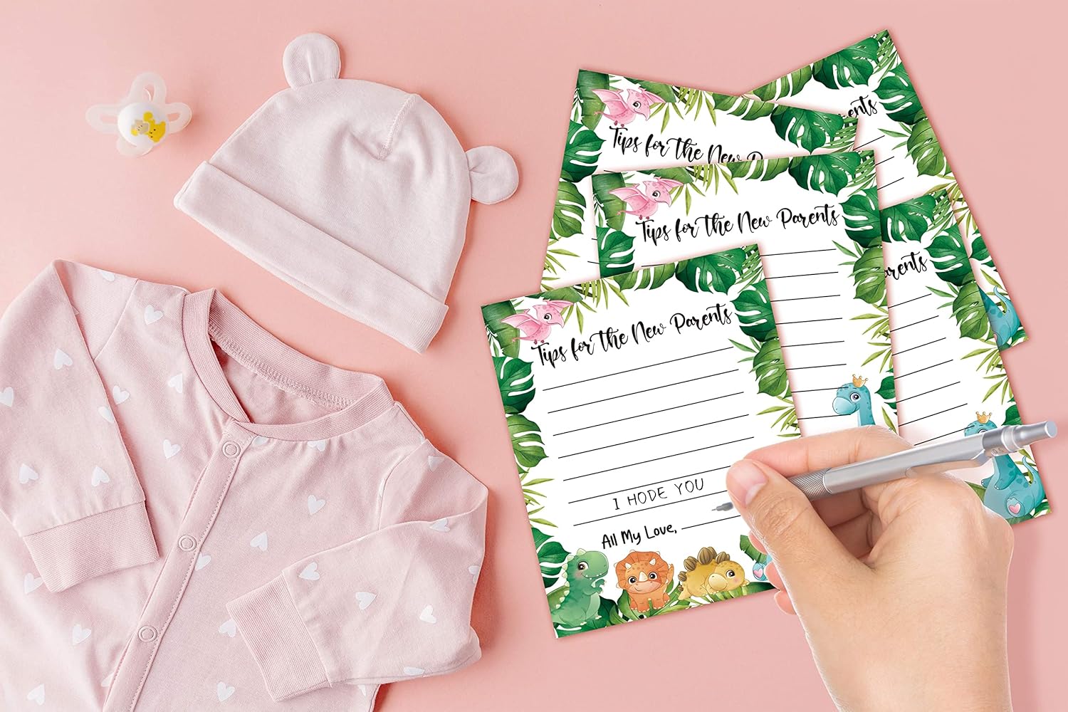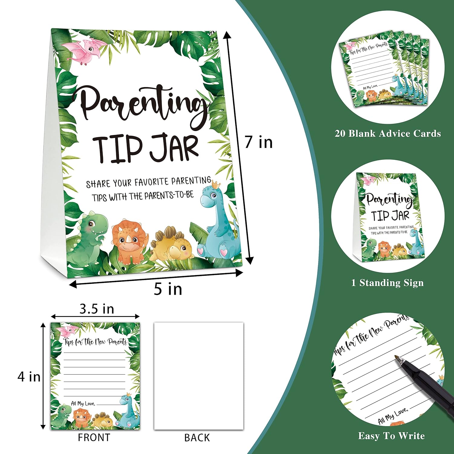Baby Shower Game Set, Parenting Tip Jar Party Games(1 Standing Sign + 20 Advice Cards), Safari Jungle Blank Advice Cards for New Parents, Dinosaur Baby Shower/Gender Reveal Party Favor Decor(A04)