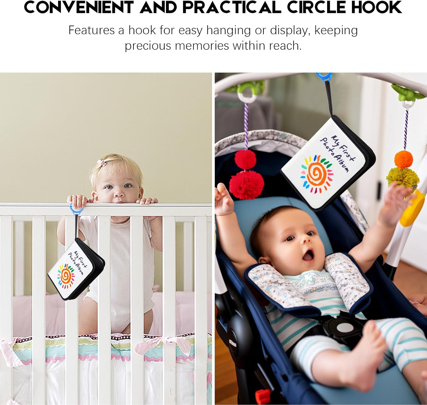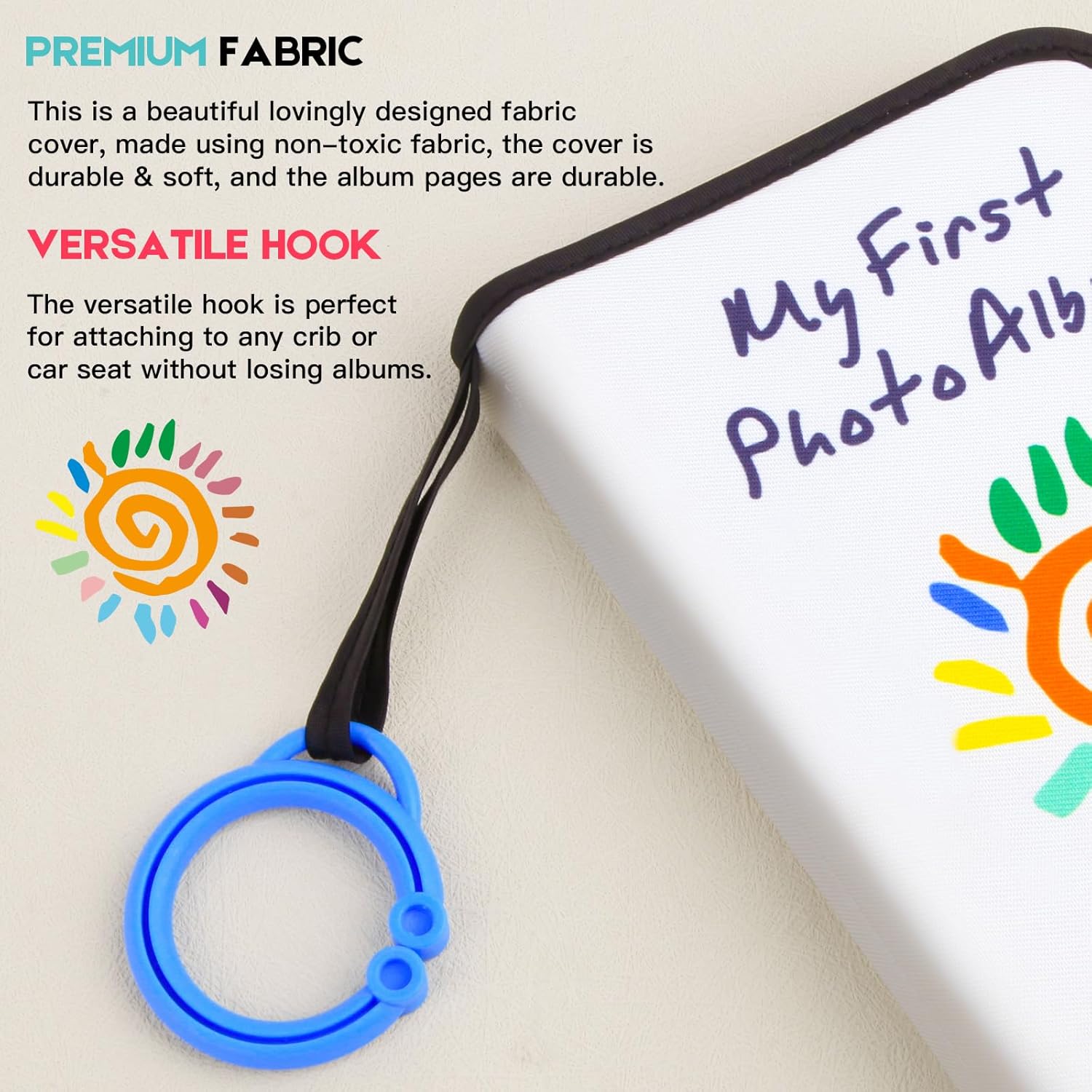 Perfect Size – This little baby album book perfect for babies’s little hand. Holds up to 21 4×6 inches pictures. The clear photo pockets can show the original definition of the photo and protect photo from baby drool, the photo will not be pasted in the pocket, easy to put in or take out. and round plastic hook attach nicely to a crib, bouncer, stroller, activity gyms, basket, etc.
