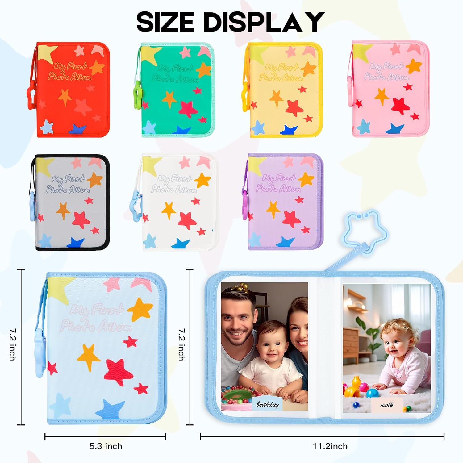 PERFECT SIZE: This small baby photo book is perfect for baby’s tiny hands. Holds up to 21 4×6 inch photos. Clear photo pockets, can protect pictures from baby’s drool, pictures won’t stick to pockets, easy to insert and remove. The star hook can be easily attached to the cot, pram, etc. Child safety mirror on one side in the middle of the last page of the album.