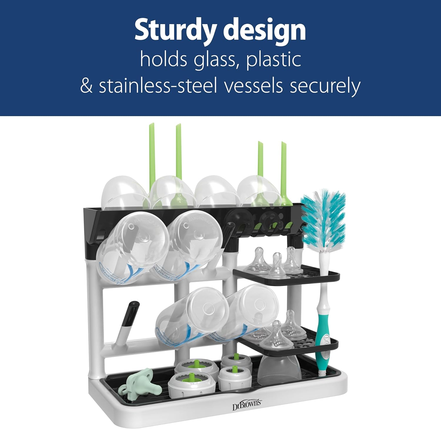 Dr. Brown’s Drying Tower, Stand-Up Drying Rack, Countertop Baby Bottle Drying with Organized Storage for Baby Essentials, Space Saving Vertical Rack