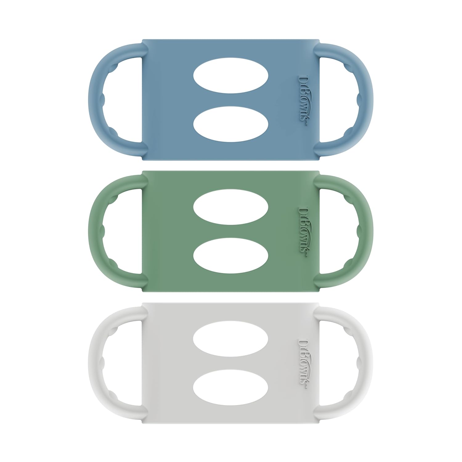 Dr. Brown’s Milestones 100% Silicone Baby Bottle Handles, Wide-Neck, Removable Easy-Grip Transitional Sippy Cup Handles, Light Blue, Green, Gray, 4m+, 3 Pack