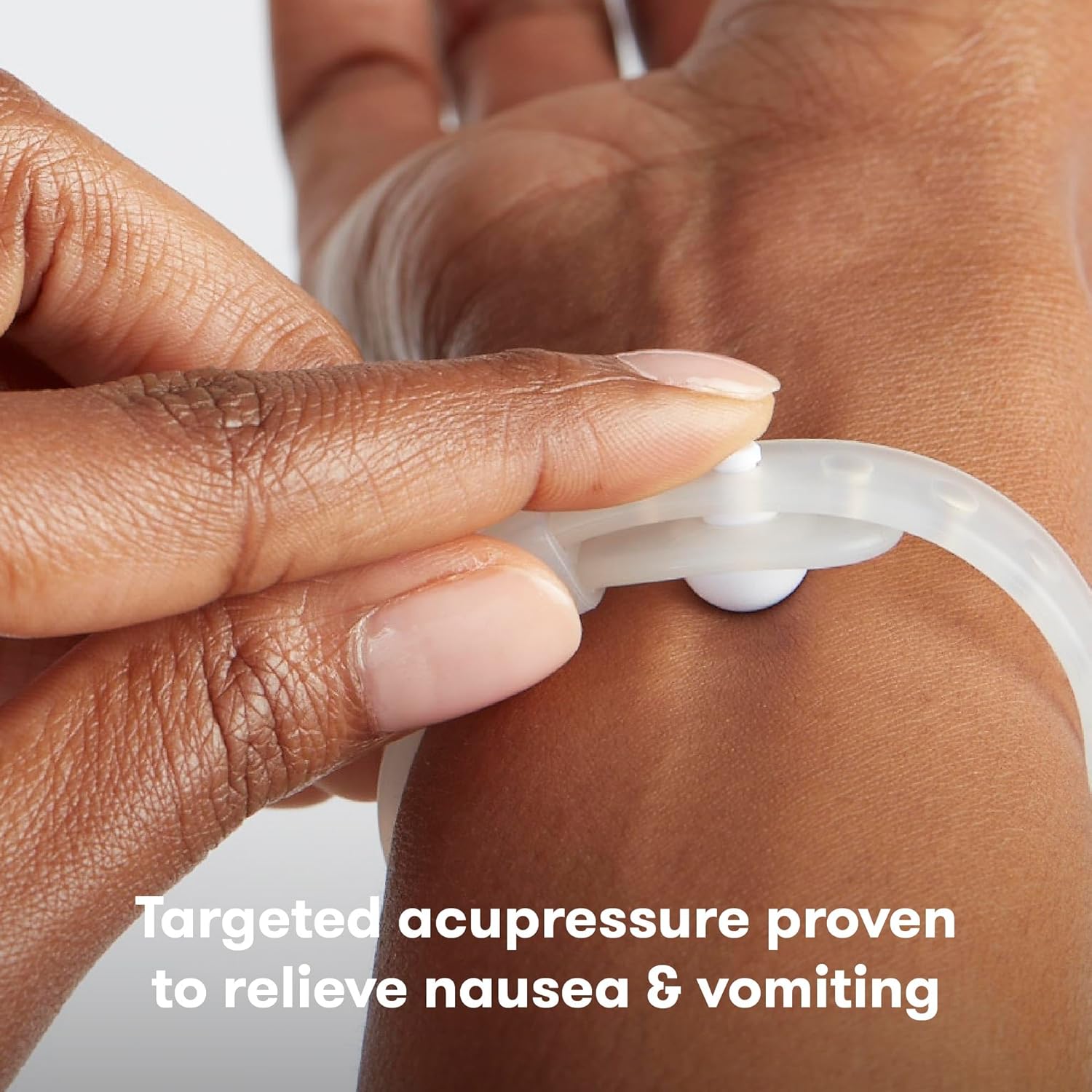 PREGNANCY NAUSEA RELIEF: Provides acupressure treatment as the button on the inside of the band to applies pressure & stimulates the P6, or Nei-Kuan, acupressure point, proven to relieve nausea & vomiting.