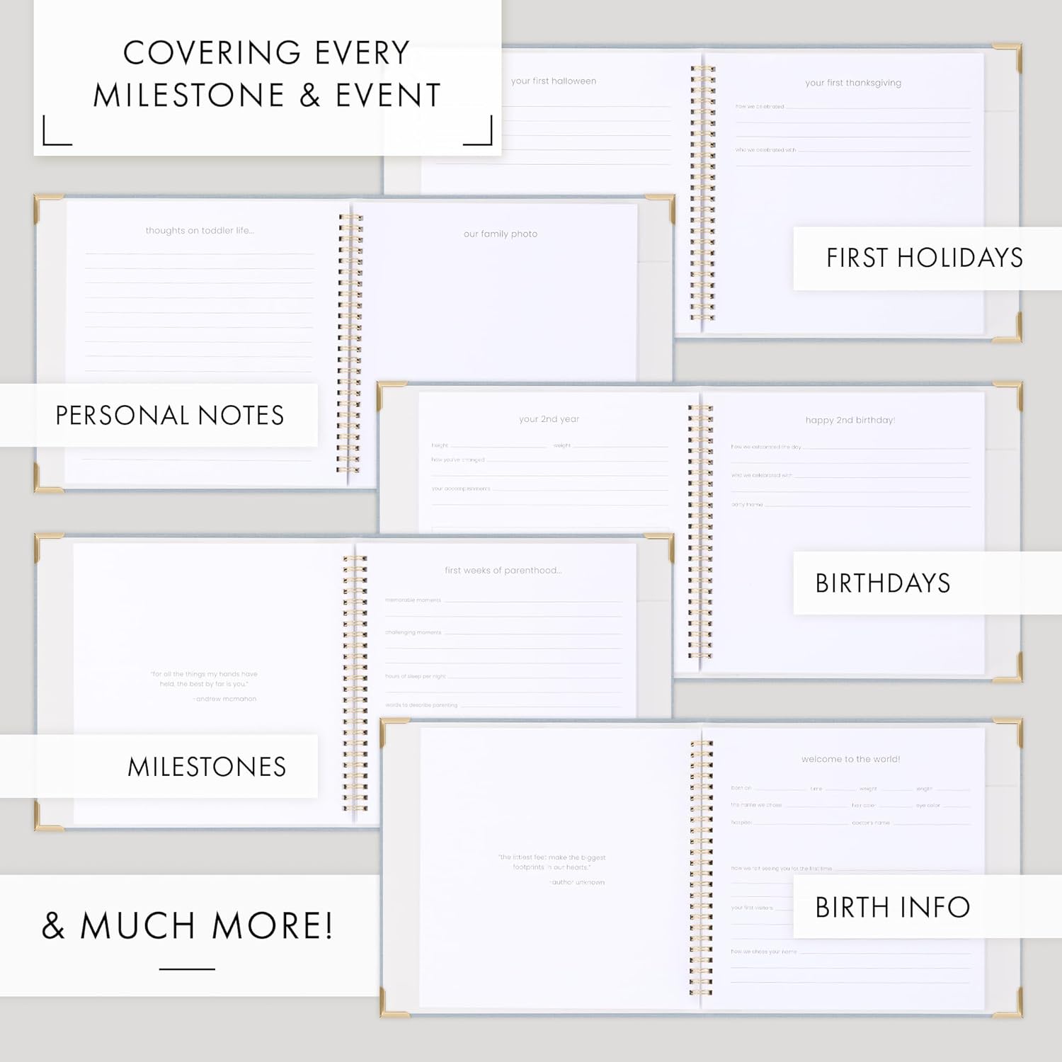 Modern Baby Book For Lasting Memories: From where the grand family adventure began to all the big milestones of your little one – thanks to the baby keepsake book you can keep precious moments from pre-birth through to the first 5 years collected in one place!