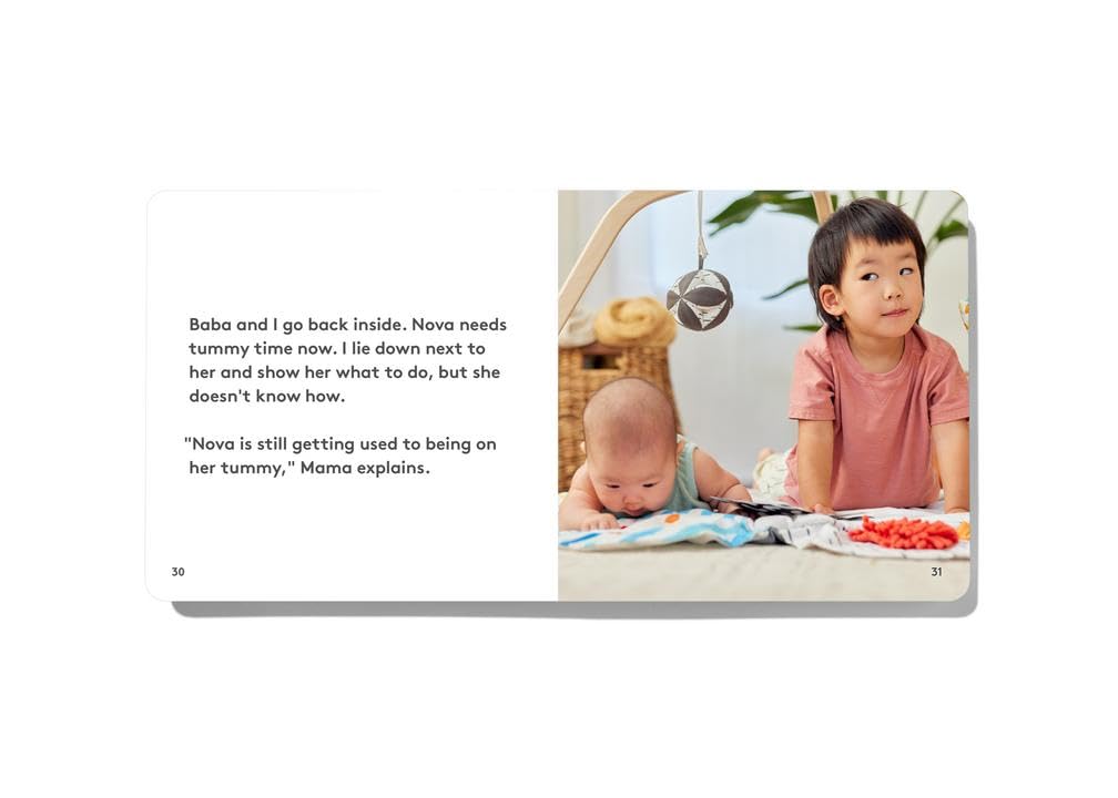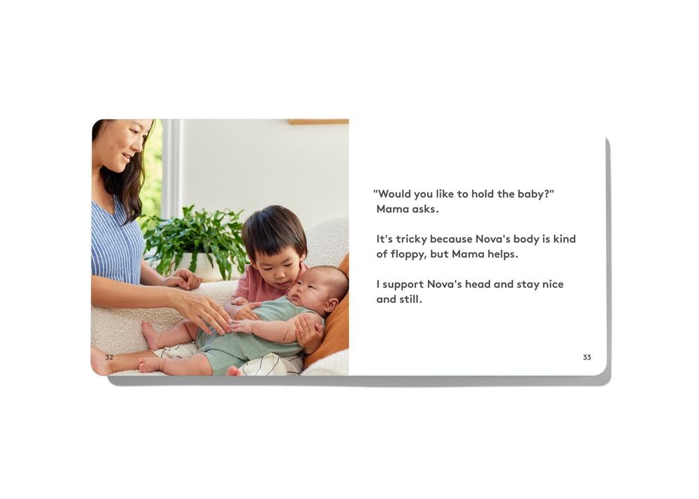 Key Features Real photographs and an authentic story help your child relate to another welcoming a new sibling. Additional expert guidance can be accessed with the QR code on the back. A fun, interactive song is included to help your child lead the way.