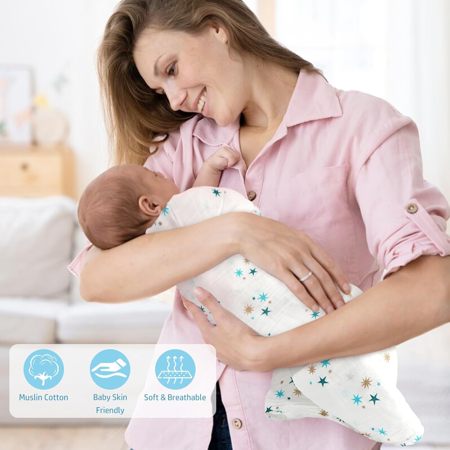 【THOUGHTFUL AND PRACTICAL BABY GIFTS】Swaddling will keep babies feel cozy and tight, reminding them of the familiar place in their mama’s belly. It’s a great way to soothe and comfort a baby, giving them the feeling of being held nice and snug. The 47” x 47” swaddle allows you to easily swaddle any size newborn baby, and it doubles as a stroller cover, shawl, scarf, nursing cover, and changing pad as your child grows.