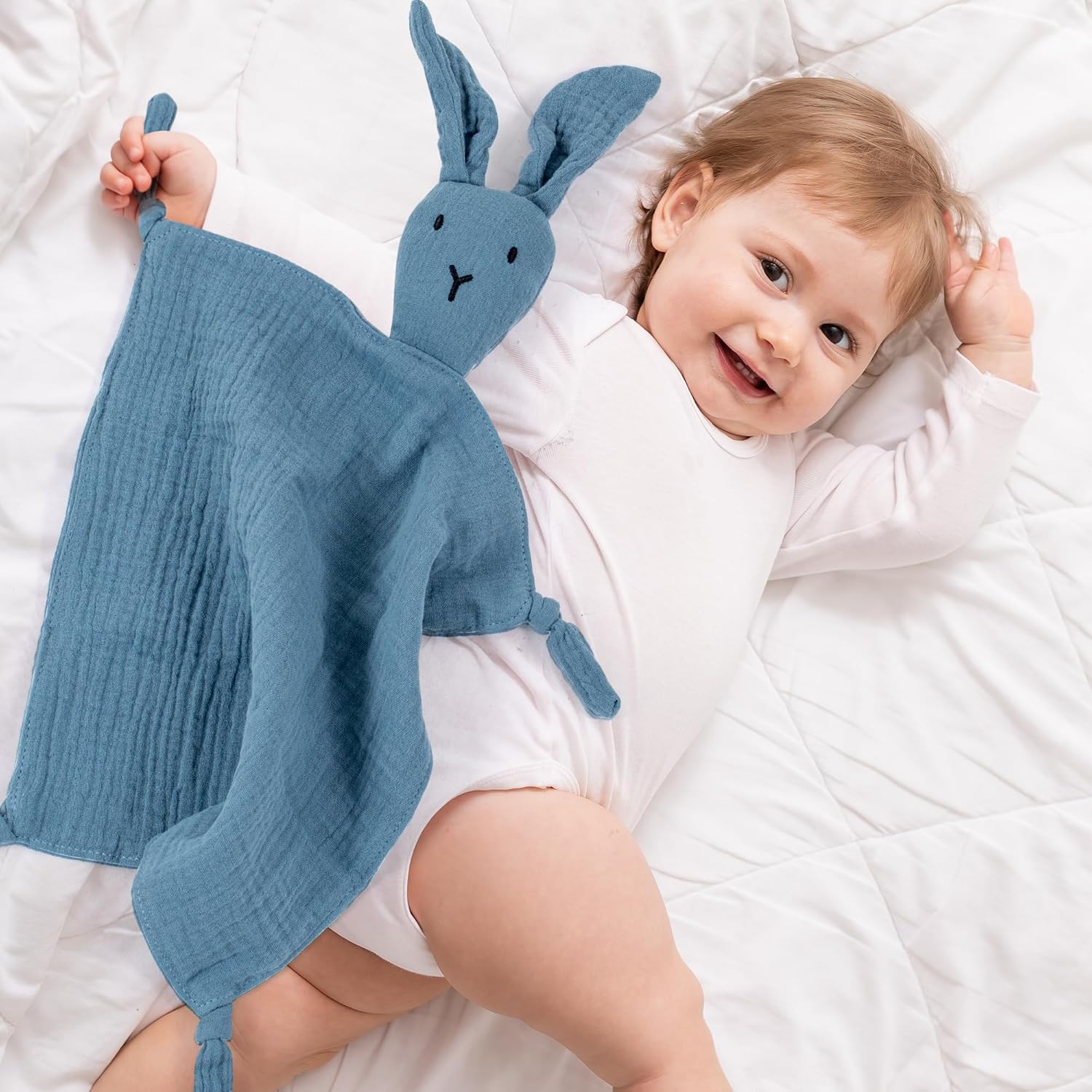 【Bunny Lovey for Baby Boy】This gift set includes a Baby Lovey Security Blanket, perfect for baby boys. This bunny lovey is made from a double layer of 100% cotton, designed to make newborns feel relaxed and comforted. It’s a great gift for baby showers.