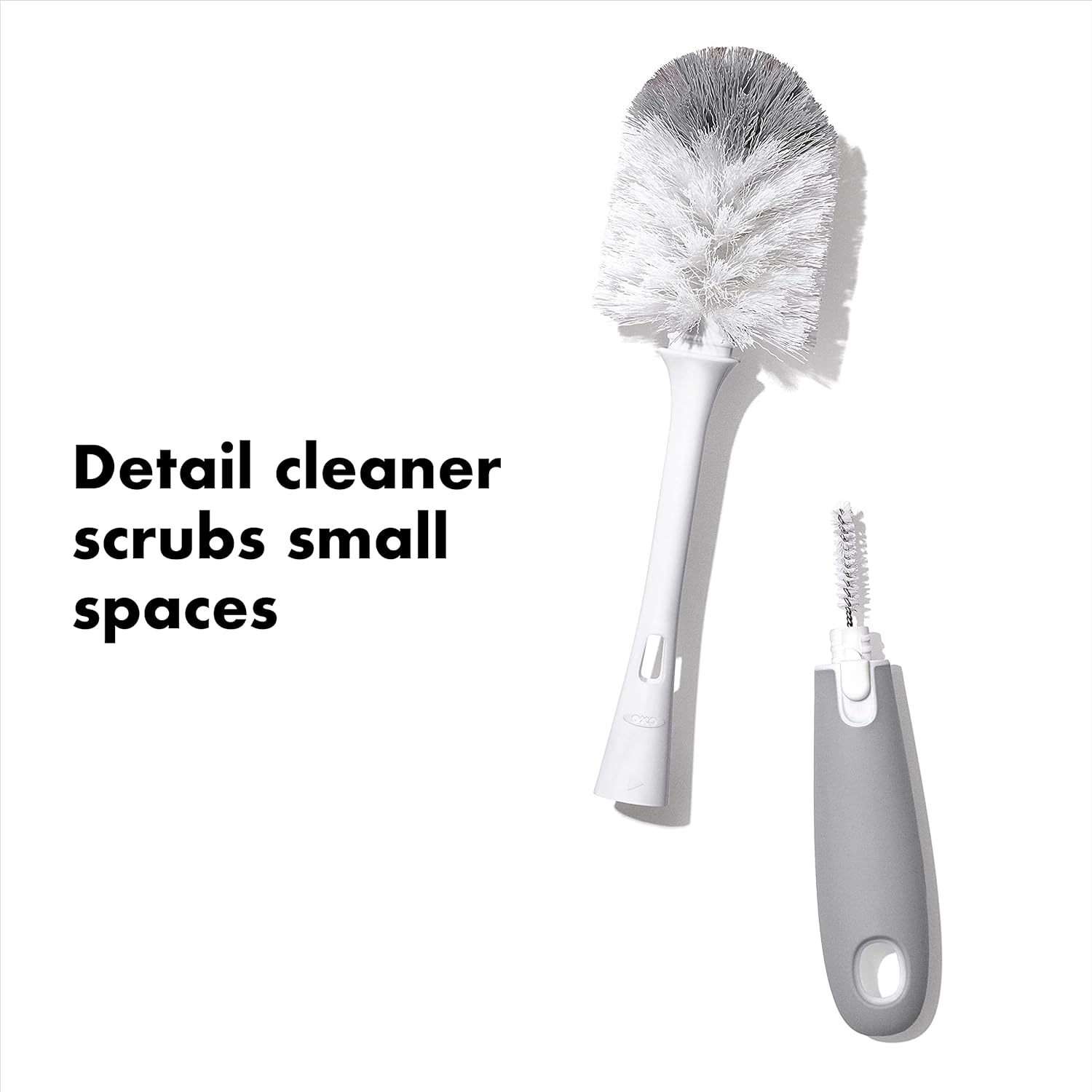 The OXO Tot Bottle Brush Set lets you clean a variety of baby feeding equipment with ease: bottles and nipples, breast pump parts, sippy cups and straw cups. The soft and firm bristles work together for a thorough clean, whether you need to clean gently or get in some serious scrubbing. With a long, flexible neck, the Bottle Brush can get all the way down inside your bottles or sippy cups. Use the detail cleaner to clean all the tight spots. Detail cleaner stores tucked inside the Bottle Brush handle. The soft, comfortable handle won’t slip out of wet hands. The convenient stand catches drips and features ventilation holes to dry the Bottle Brush. Dishwasher safe. Soft, non-slip grip. BPA/Phthalate and PVC free.