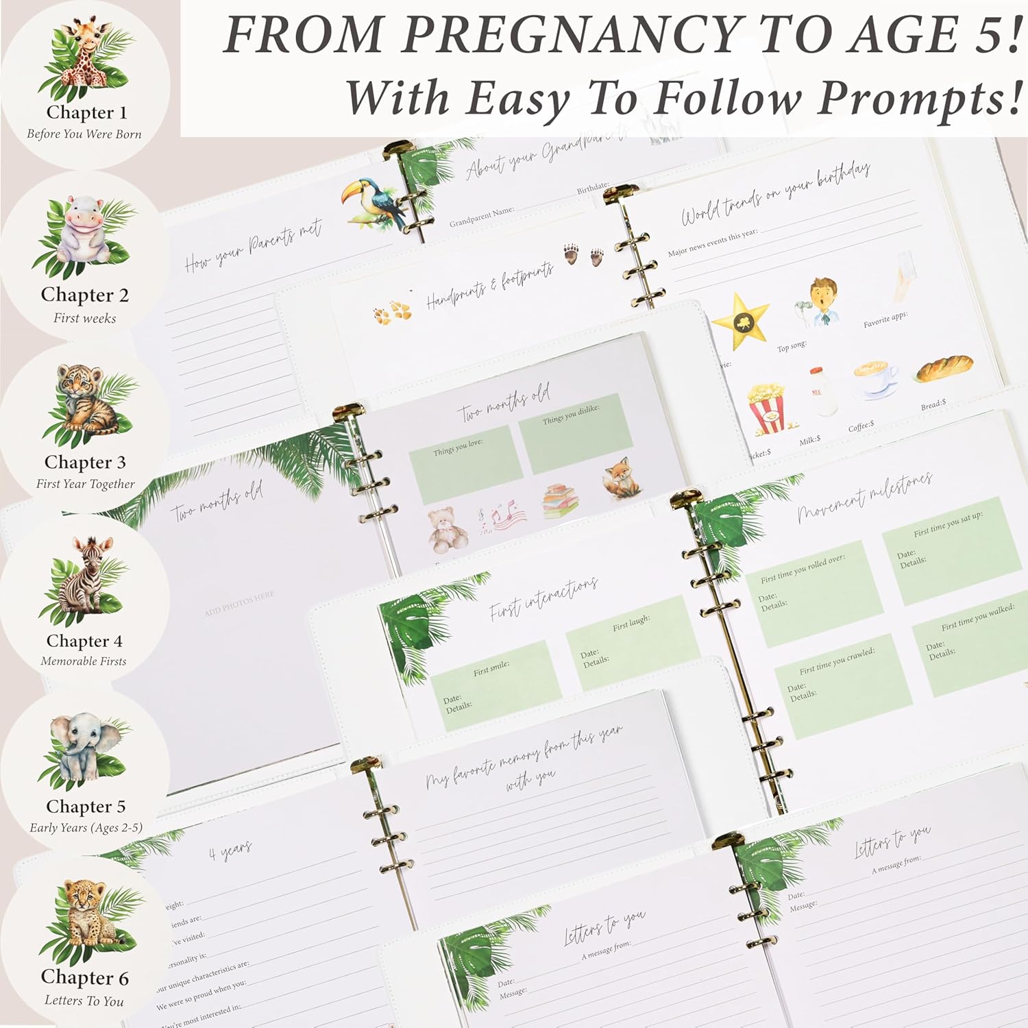 CAPTURE EVERY MEMORY FROM PREGNANCY TO AGE 5 – Create your unique baby scrapbook from the moment you found out you were expecting to the time they reach age 5. Our 144 page baby memory book has ample space for photo’s and writing space including fun water color illustrations framing prompts to make tracking every special memory simple!