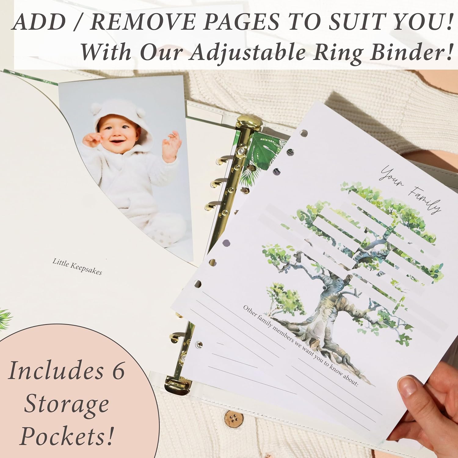 MODERN, DURABLE & PRACTICAL DESIGN FOR THE ULTIMATE KEEPSAKE – Featuring premium gold foil stamping, extra thick paper and 6 storage pockets. Our durable faux-leather cover adds a touch of elegance and superior protection, whilst the flexible ring binder boasts practicality to insert special keepsakes like hospital wrist bands.